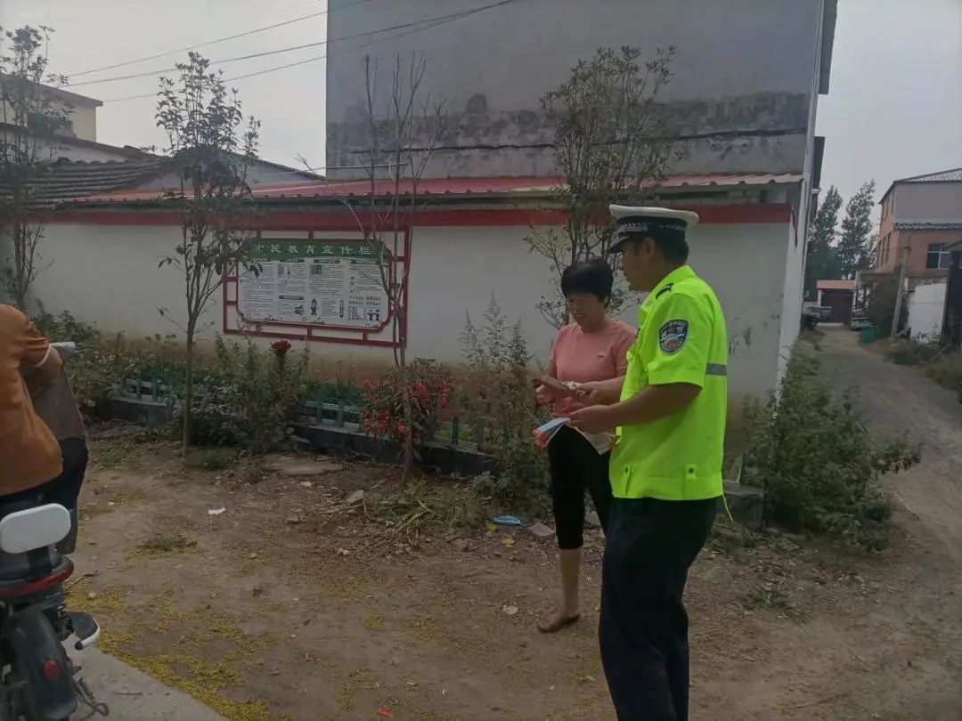 9月13日,汝南县交警大队宣传民辅警走进辖区韩庄镇各个村委开展交通安全进农村宣传教育活动。
