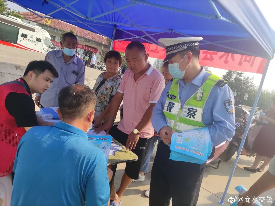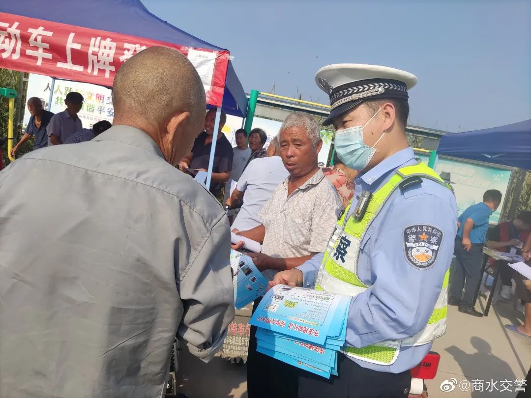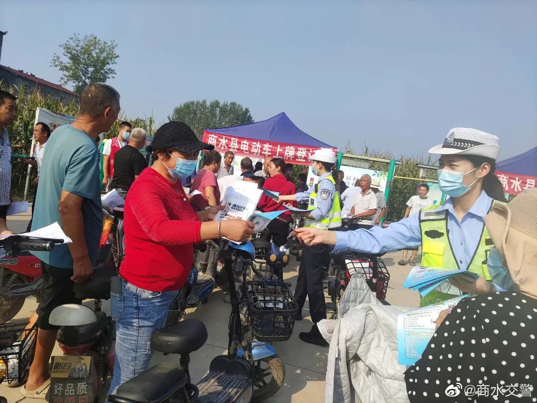9月14日上午九点三十分商水县公安局交警大队组织民辅警走进辖区行政村电动车上牌聚点,充分发挥“大喇叭”播报优势,向广大农民朋友开展交通安全宣传活动。