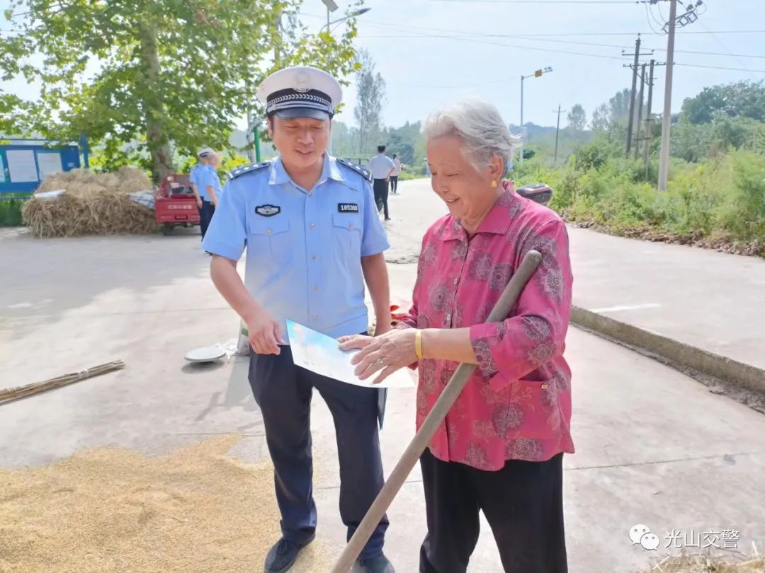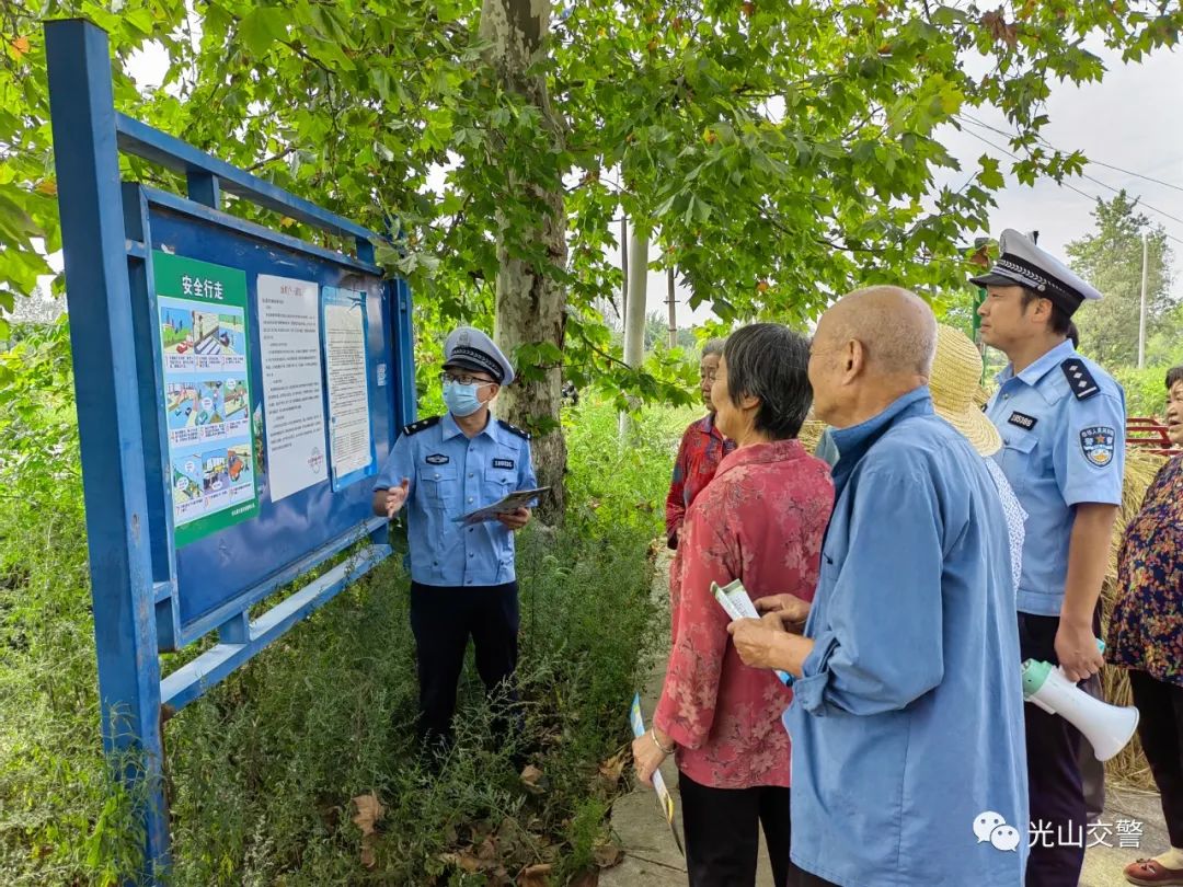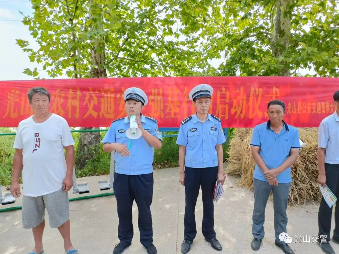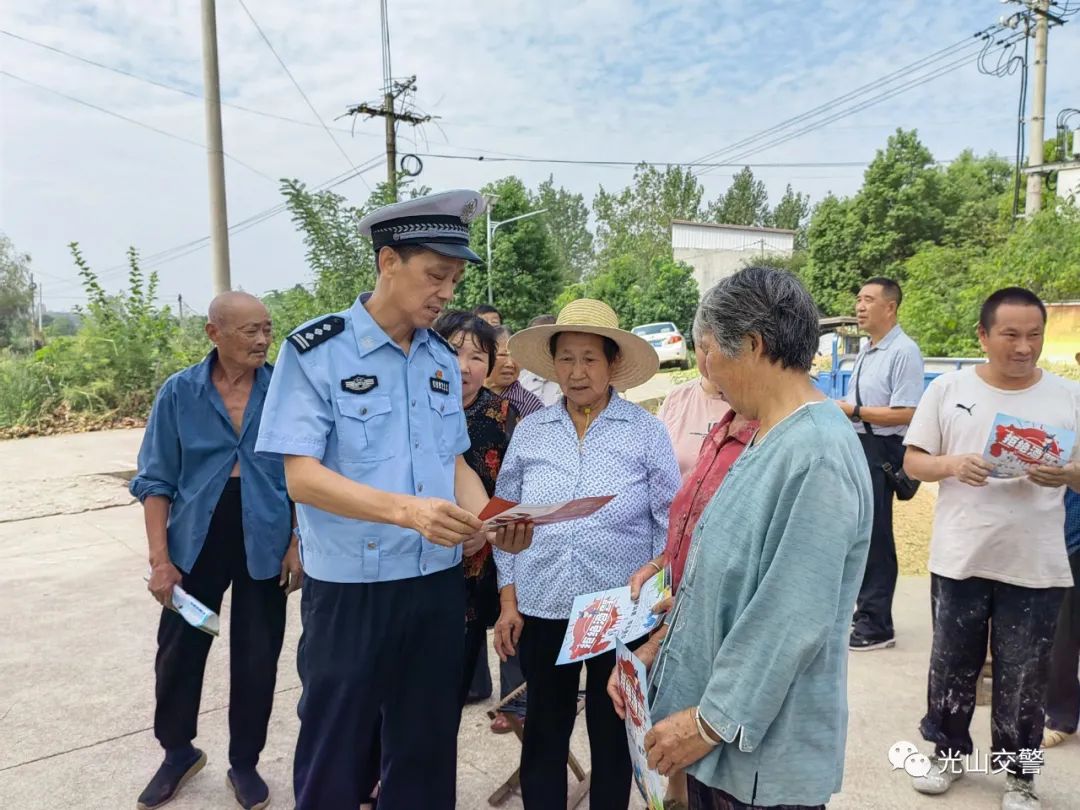 9月8日上午,光山公安交警在文殊乡朱畈村举行农村交通安全宣传强基行动。