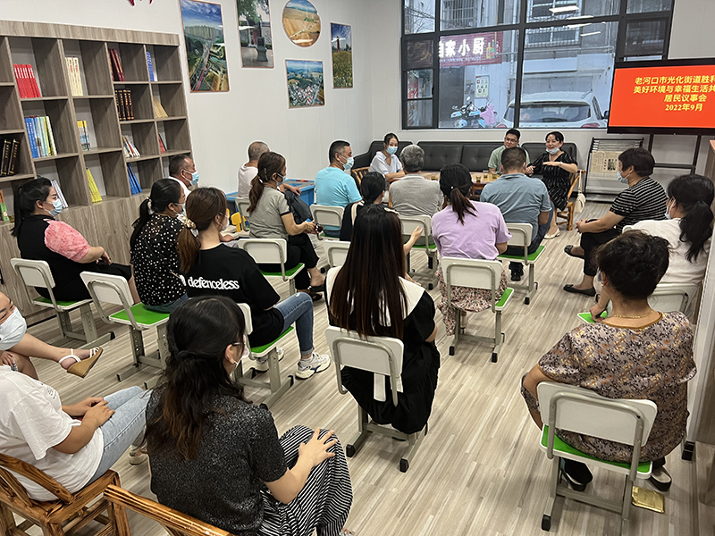 湖北日报客户端讯(通讯员童朵)“咱们社区准备组建‘七彩蜂巢’社区志愿服务队,平时开展一些志愿服务活动,把‘时间存折’‘爱心银行’‘积分超市’这些项目用好用活……”9月20日下午,老河口市光化街道胜利路社区书记陈红在辖区红色驿站,向居民宣传社区开展共同缔造相关活动情况。