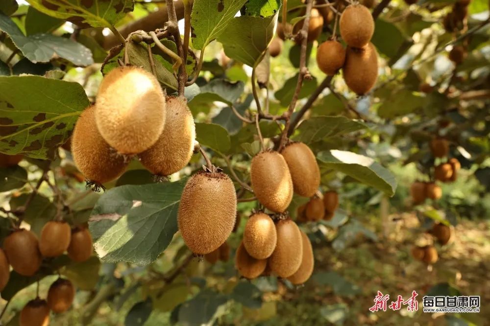 陇南市康县岸门口镇贾家坝村康县猕猴桃种植基地的猕猴桃。新甘肃·每日甘肃网通讯员 黄培军 摄成熟的果实蕴含芬芳让嗅觉在香气扑鼻中尽情沉醉