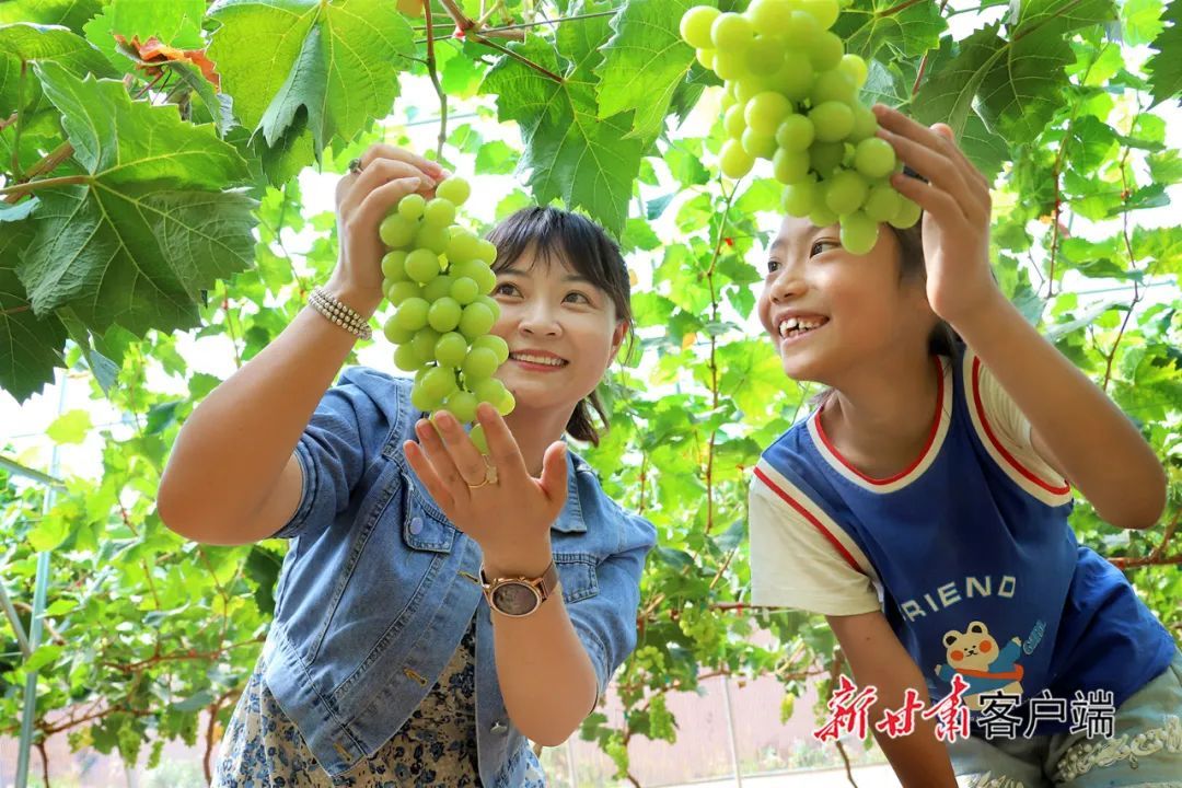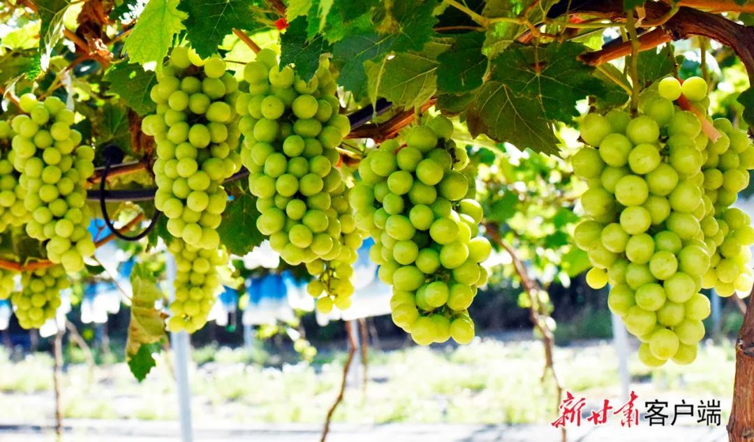 天水麦积、张掖高台的“阳光玫瑰”葡萄已经成熟仿佛鲜艳翠绿的翡翠互相碰撞、叮当作响