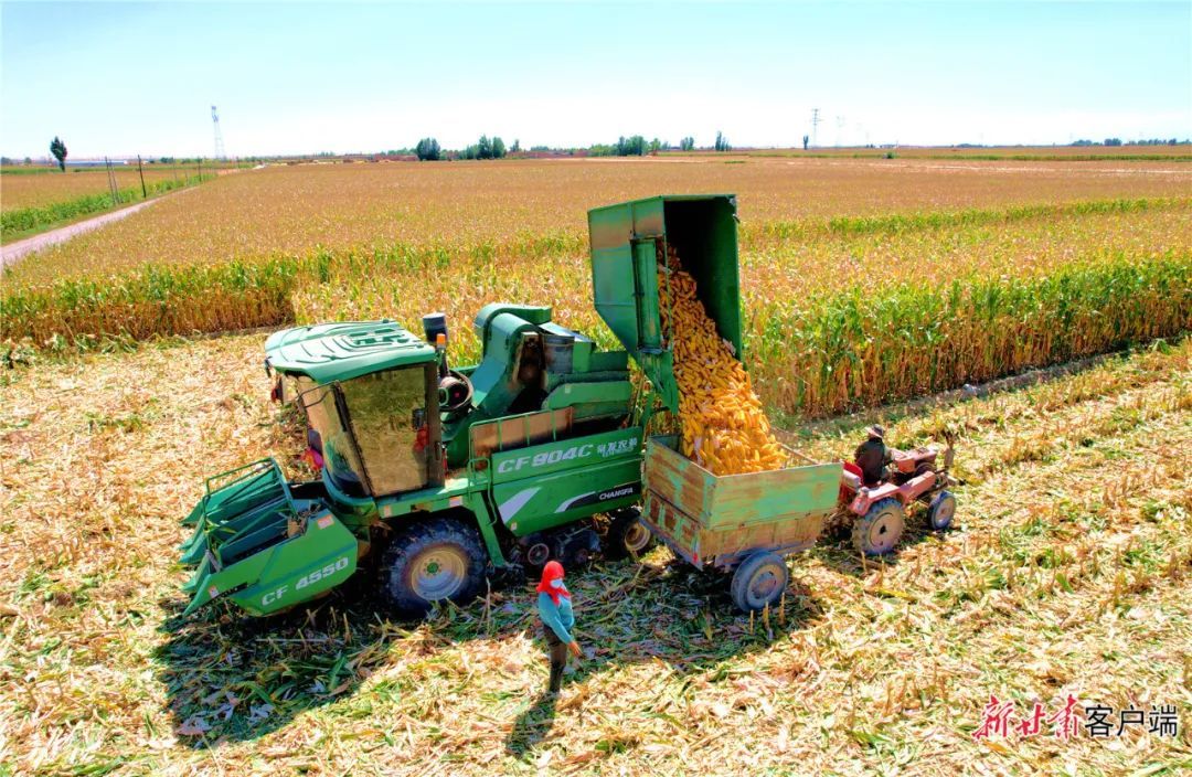 从前丰收是风吹水稻的沙沙声丰收是镰刀割麦的簌簌声丰收是用力将粮食压实的嚓嚓声农人们一寸一寸用最传统的方式收割作物
