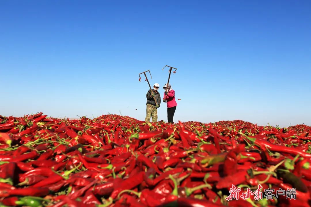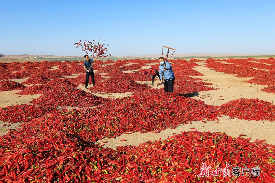 金塔县种植户抢抓晴好天气晾晒辣椒。新甘肃·甘肃日报通讯 曹红祖 马玉福
