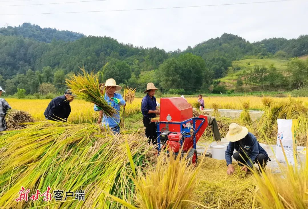 文县城关镇马家坝群众正在收割水稻。新甘肃·甘肃日报通讯员 王小勇