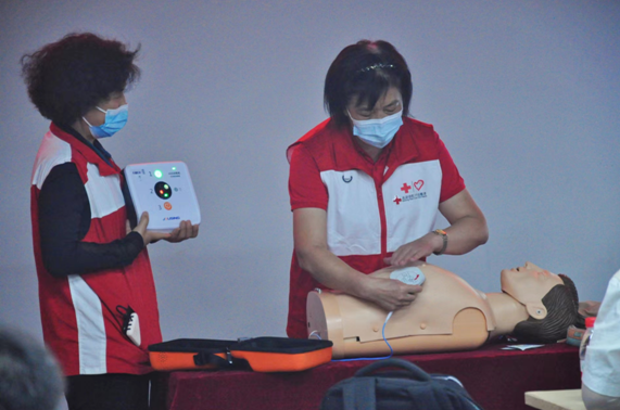 北京市红十字会培训中心王伯华老师讲解心肺复苏的定义、意义和基本流程,并对判断是否丧失意识、有无自主呼吸、有无脉搏等心肺复苏操作要领进行了重点说明。
