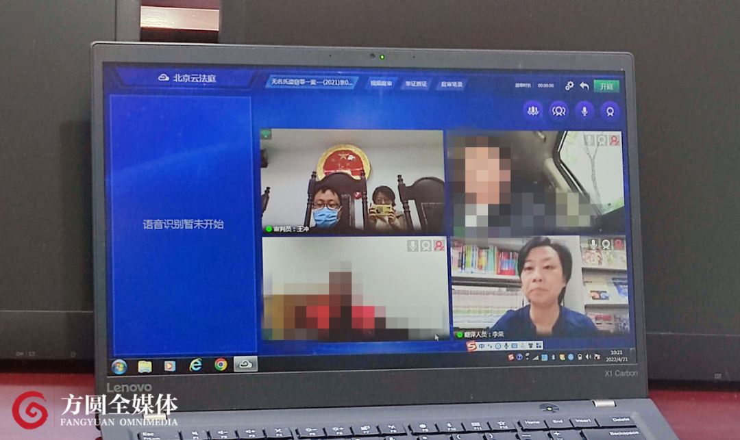 4月21日,北京市海淀区法院线上庭审,李荣在线上进行手语翻译工作
