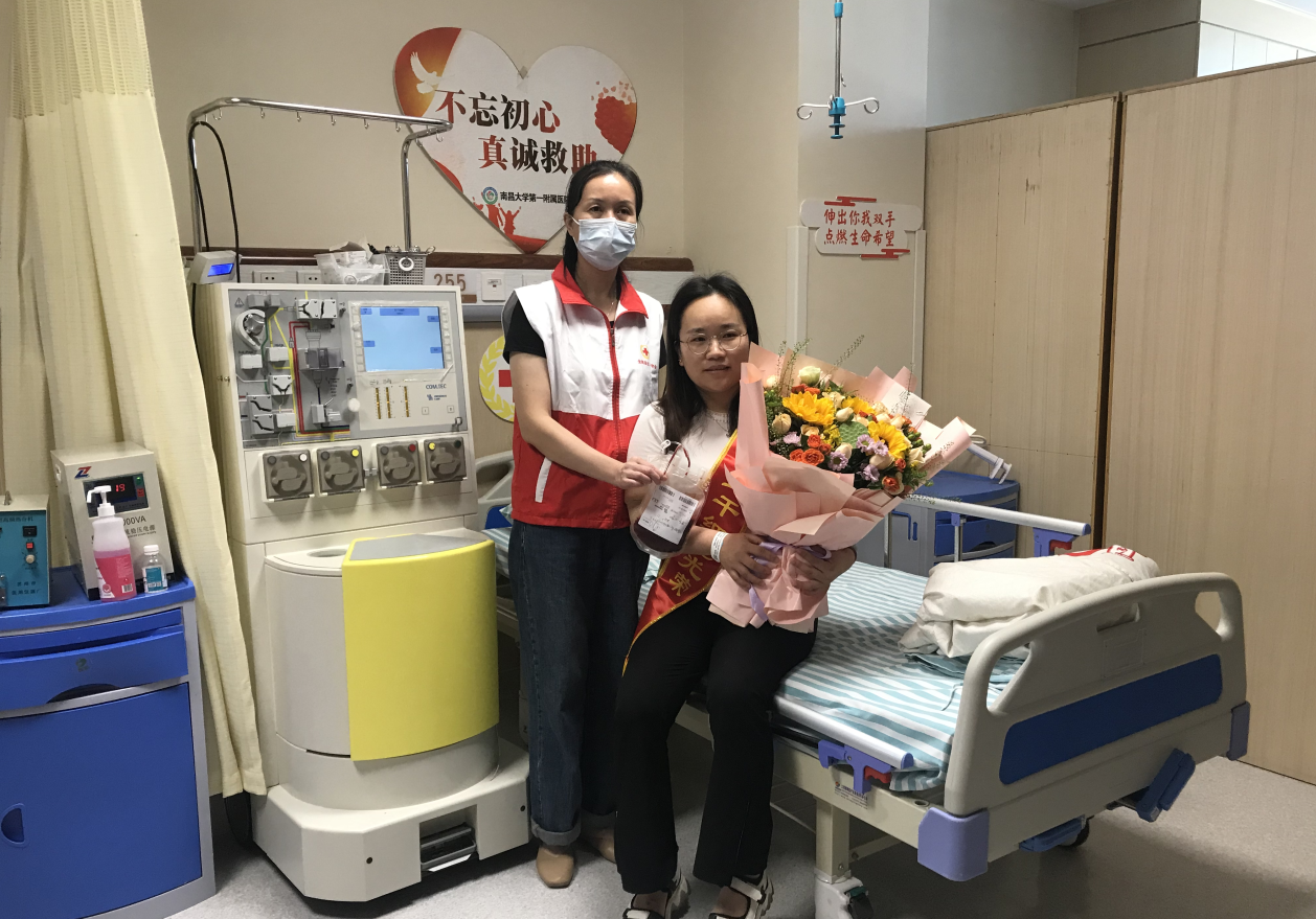 从9月14日出发到9月20日归来,历时一周,她克服了家中两个孩子还小需要照顾、身边亲人患病需要陪护、自身工作繁重等重重困难,打了9针动员剂,忍受住心理上的压力和身体上的不适,最终成功采集142毫升造血干细胞混悬液,为白血病患儿送去了“生命的种子”,为那个家庭送去了希望!她也成为了赣州市第51例、全南县第2例成功捐献造血干细胞的志愿者。