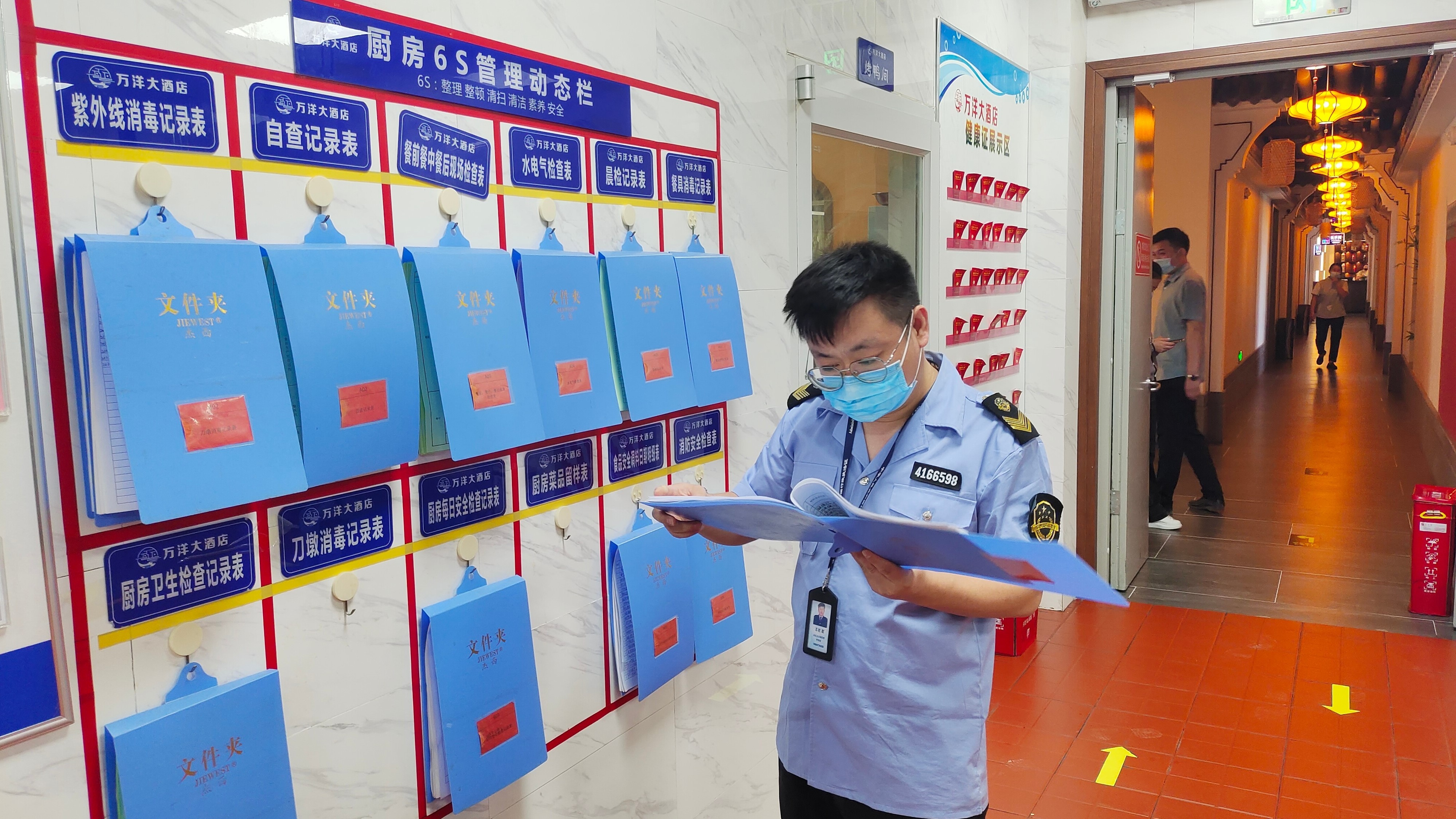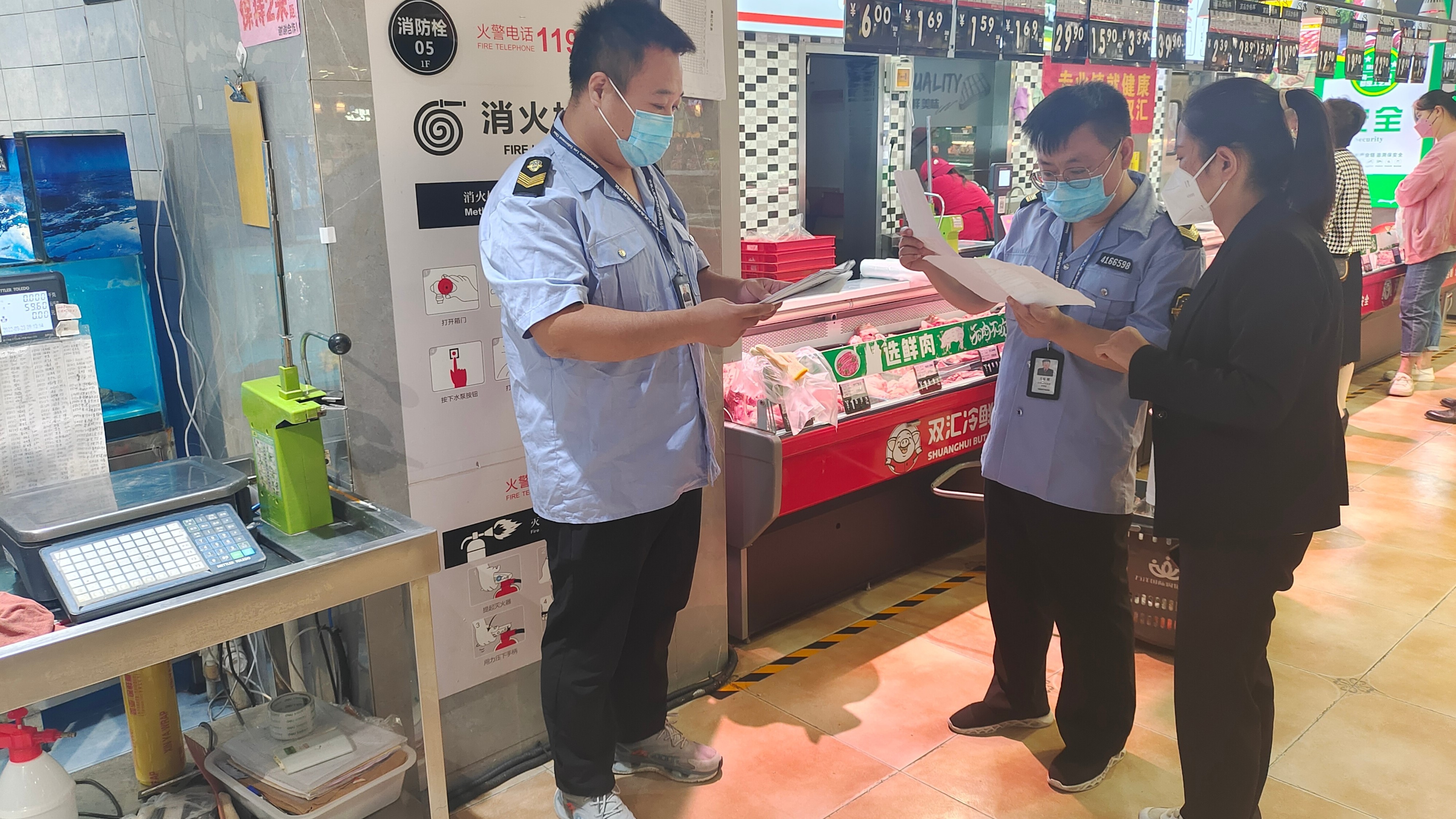此次检查以综合性商超、大中型餐饮服务单位等食品经营单位为重点对象,以禽畜肉、粮油、乳制品、熟食等热销食品为重点品种,主要查看食品经营许可证、进货查验索证索票、食品、原料贮存及是否过期变质、食品安全管理制度、餐饮具清洗消毒保洁、从业人员健康管理、食品加工操作等方面。执法人员要求食品经营户严格落实食品经营主体责任,督促食品经营户严把进货查验关,及时消除风险隐患。截止目前,共出动执法人员110余人次,执法车辆23台次,检查食品经营单位87家次,发现食品安全问题2个,已现场责令整改到位。