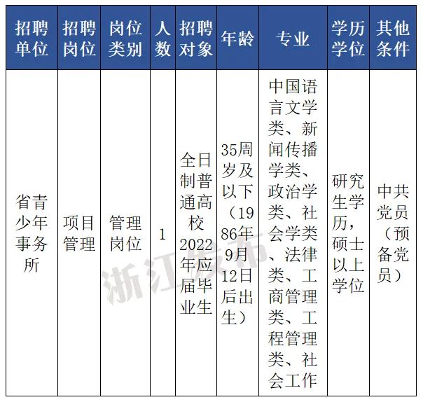 因工作需要,浙江省港航管理中心面向社会公开招聘编外人员1名。