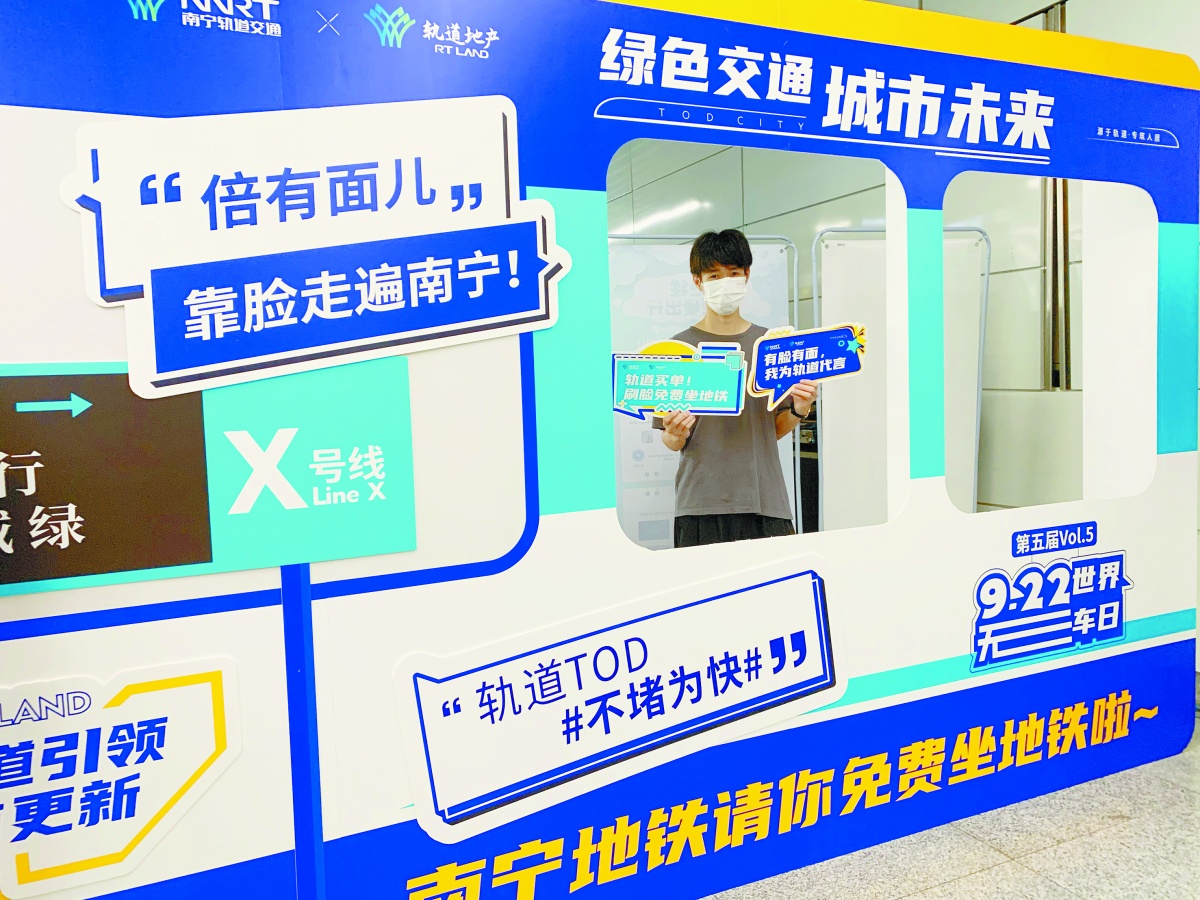 9月22日,市民在南宁地铁金湖广场站参与世界无车日活动。记者 黎莹遐 摄