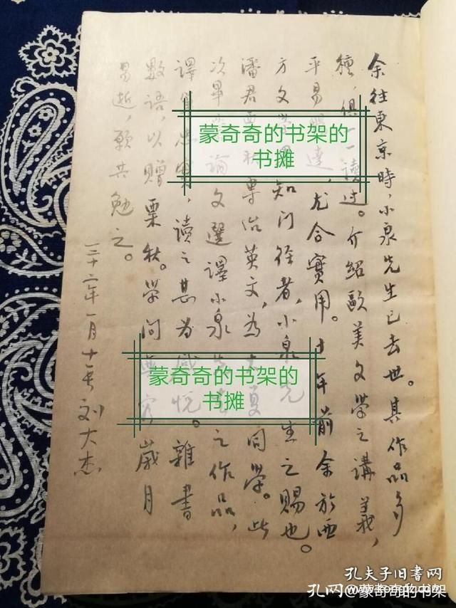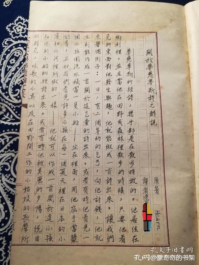 这是一本在抗战沦陷期间,上海私立大夏大学某系潘姓学生写的一篇论文手稿,作于1943年,即民国32年。私立大夏大学解放后合并重组为华东师范大学。手稿前附周其勋先生和刘大杰先生——两位民国时期的著名学者亲笔为潘姓学生此篇论文所作的题辞,热情洋溢,弥足珍贵。