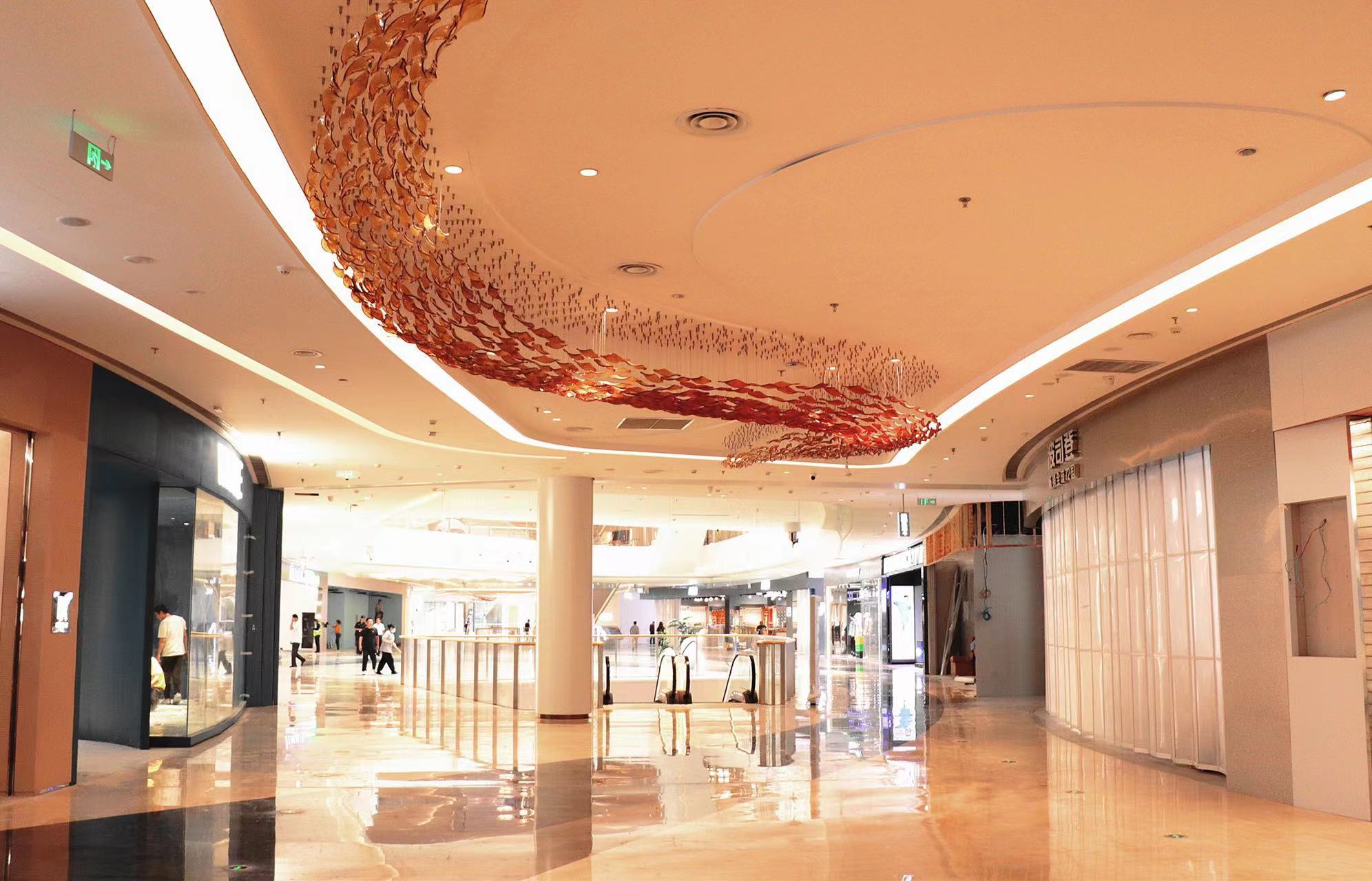 在峡谷街区,最大的亮点无疑是南京最大规模,超3000平米的巨幅星空穹顶。以波光粼粼的形态使自然生态与现代艺术完美融合。白天,阳光洒落肩头的温暖;夜晚,星光璀璨,流光四溢。