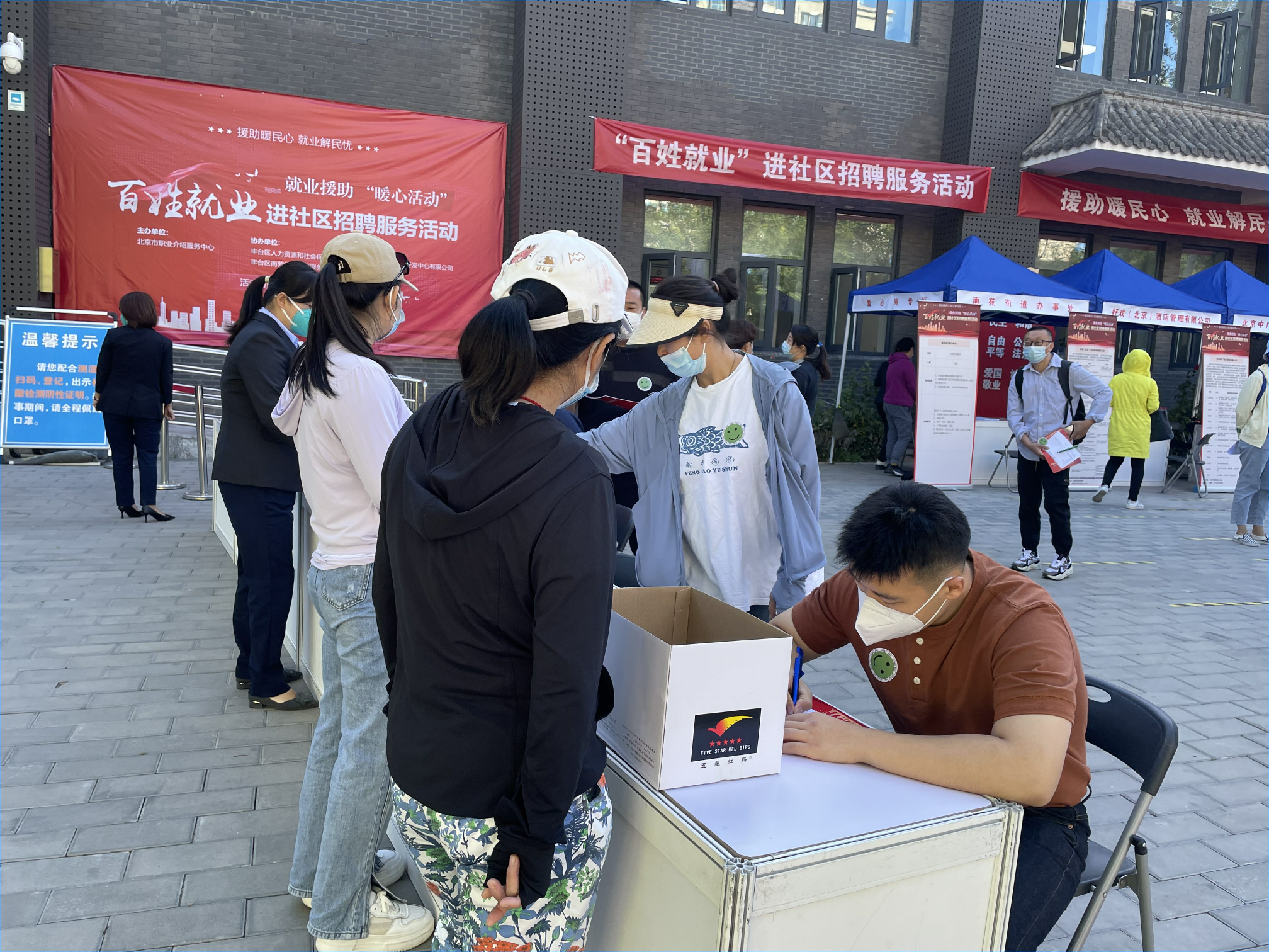 为贯彻党中央、国务院稳就业保就业决策部署,统筹推进北京市就业援助“暖心活动”等专项活动,市人力资源社会保障局组织开展了“‘百姓就业’进社区招聘服务活动”,9月23日,以“援助暖民心、就业解民忧”为主题的现场招聘活动,在丰台区南苑街道政务服务中心举办。招聘活动主要面向丰台区南苑街道及周边地区离校未就业毕业生、失业人员、农村劳动力等有就业意愿的重点群体(以下简称“重点群体”),以线上线下相结合的方式,将小型、专场招聘活动送进社区。