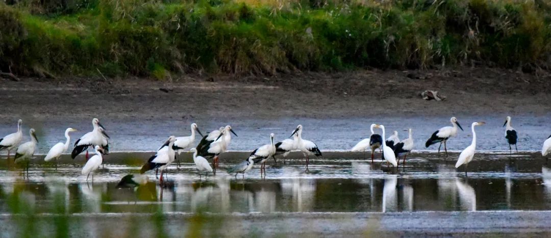 东方白鹳属大型涉禽,被誉为“鸟中国宝”,是国家一级保护野生动物,全球只有几千只,被《世界自然保护联盟》列为濒危物种。东方白鹳对生活环境要求极为苛刻,只有水源充足、食物丰富、人迹罕至、综合环境质量高的湿地地区才能成为其栖息常住地。