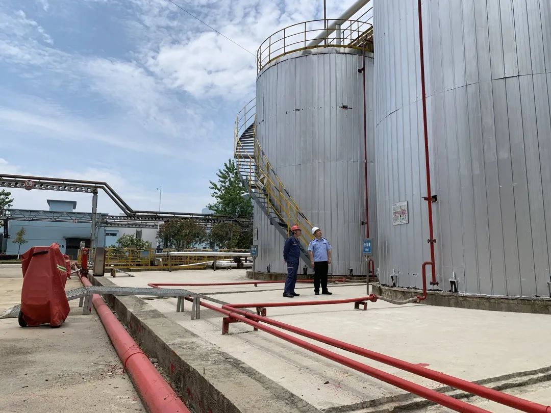 7月,天气晴朗,烈日炎炎,青山区安全生产监察执法队队长万昌伟和同事走进武汉聚焦精化工有限责任公司工厂中,检查现场设备运行情况和员工作业规范。在现场,各类设备设施虽运行多年,但少有锈迹,各处均挂有安全提示标牌,高温部位进行多层隔热处理,一线工人均按规范作业。