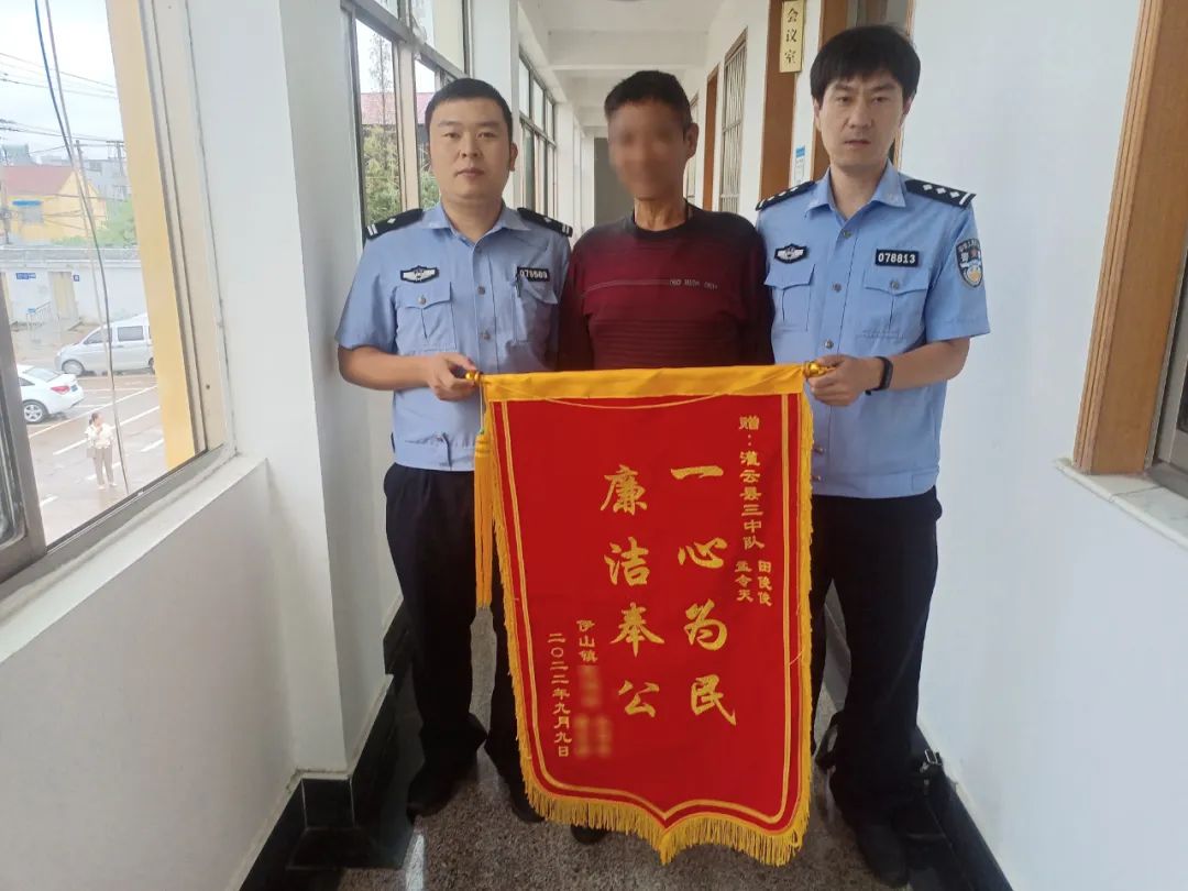 ▲灌云县居民吴某遭遇一起交通事故腿部骨折,肇事者现场逃逸。灌云县公安局交警大队民警接到报警后,仔细勘察现场,迅速锁定肇事车辆和嫌疑人,并于当晚将嫌疑人抓获。在后续工作中,民警多次耐心协调,最终就赔偿事宜事故双方达成了一致意见。为了感谢民警提供的帮助,吴某特地制作一面锦旗送至民警手中以表感激之情。