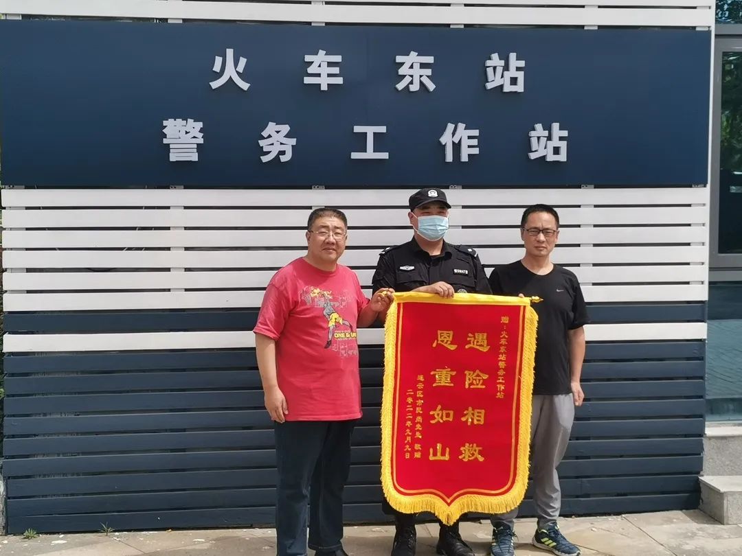 ▲市民尚先生在连云港火车东站附近身体突发不适,重重摔倒在地无法起身,正在周边开展巡逻的开发区公安分局连云港火车东站警务工作站巡特警队员在听到群众呼救声后立即飞奔到现场,协助医护人员成功救助伤。“十面、百面的锦旗都比不上您的康复更令我们高兴。”民警在接到尚先生赠送的锦旗后这样说道。