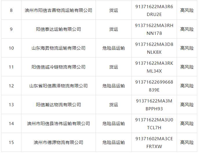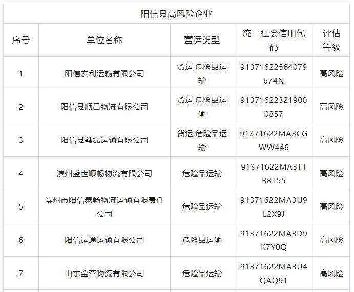 齐鲁网·闪电新闻9月23日讯 9月23日,阳信县公安局交通警察大队发布消息,近日,通过全国公安交通管理综合应用平台对运输企业进行安全风险分析,2022年9月份截至目前,阳信辖区共有高风险企业15家,其中危化品运输企业11家,普货企业4家。