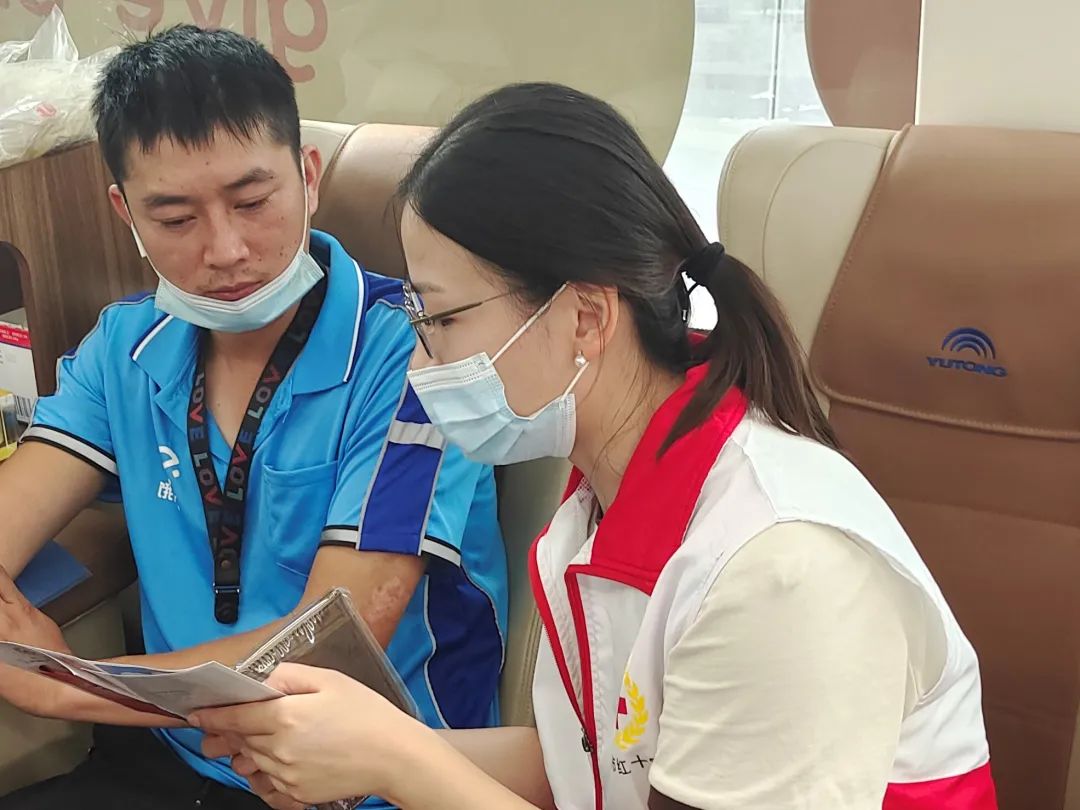 “捐骨髓是传统的说法,一般是通过骨髓穿刺采集骨髓,但随着医学事业的不断进步,这种落后的方法已经淘汰,现在捐献造血干细胞的过程相当于一次采集时间稍长的献血……”红马甲志愿者耐心地向群众宣传,打破了大多数人认为捐献造血干细胞会带来身体危害等思想误区,极大提高了群众参与的积极性。