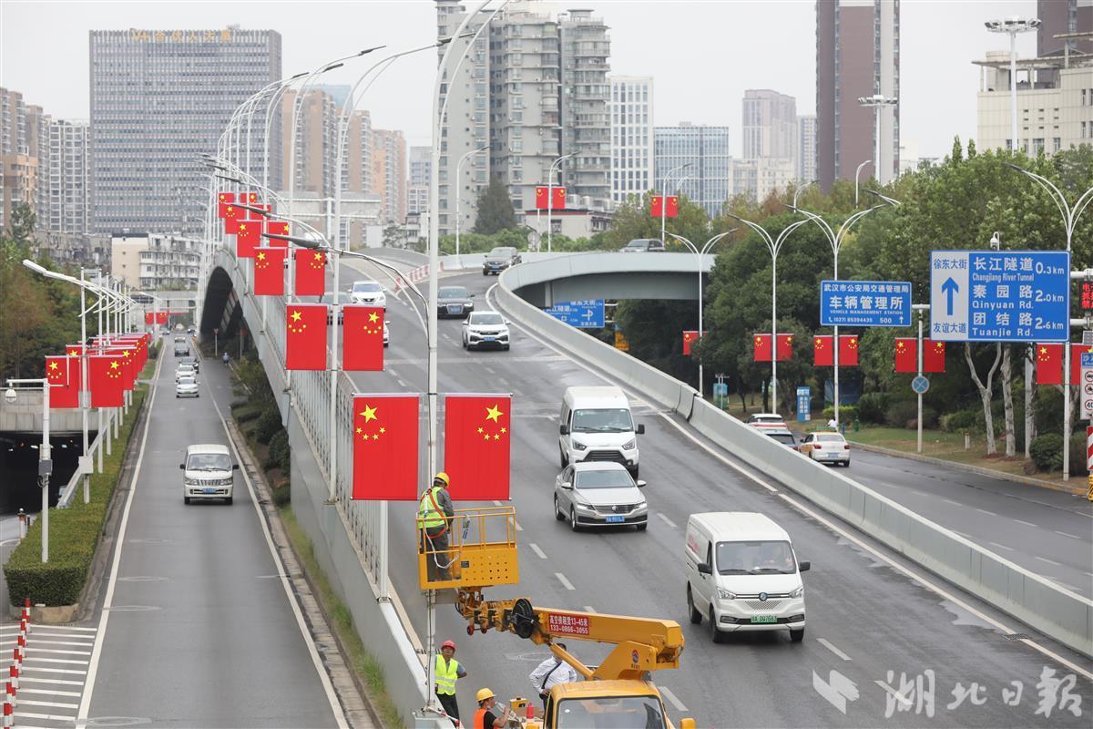 据悉,武汉市悬挂国旗工作将于9月28日之前完成。届时,武汉城区主次干道、跨江湖大桥、高架桥、商圈和旅游景点等区域,将会升起面面崭新的“中国红”。