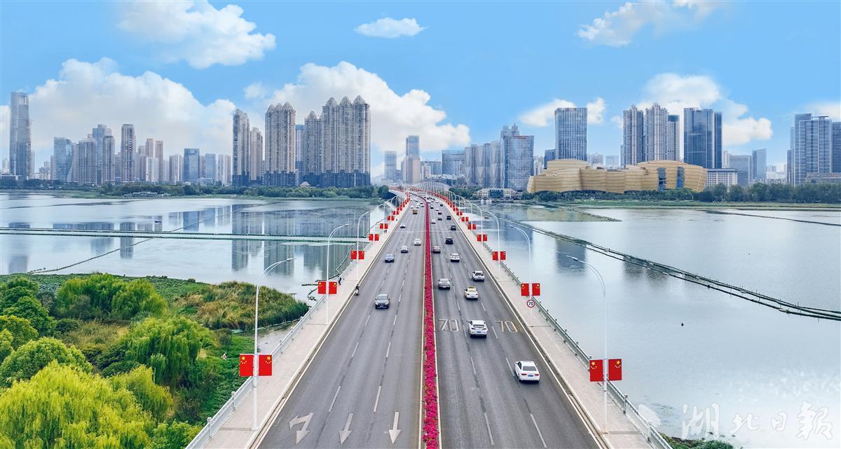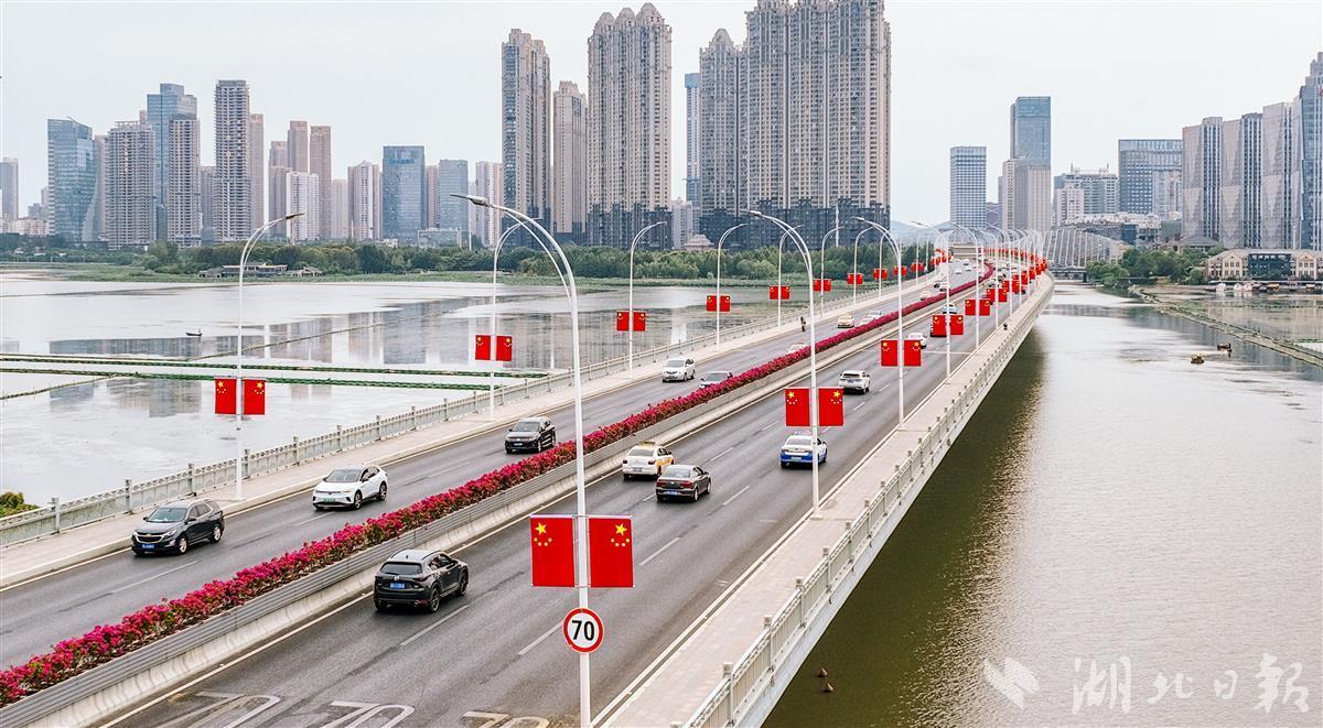 湖北日报讯(记者刘洁、通讯员殷莉红、李可欣)“放眼望去,满目的中国红真是太漂亮了!”9月22日,武汉市武昌区友谊大道,市民张先生发出感叹。