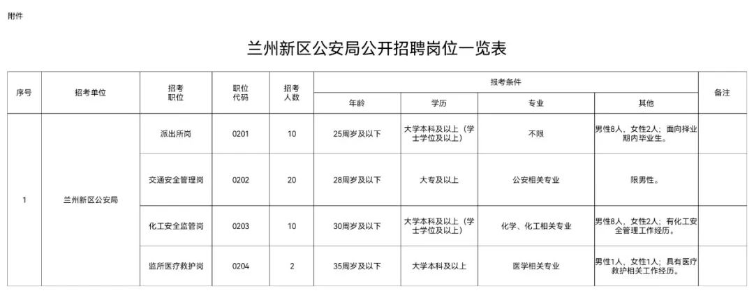1.兰州新区公安局交通安全管理岗位:年龄由25周岁及以下变更为28周岁及以下;取消“面向择业期内毕业生”条件限制,其他条件不变。
