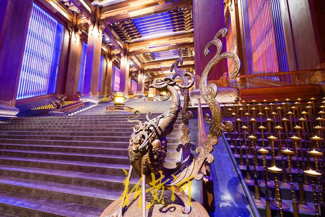 在孔子像东侧是仿秦汉式建筑——大学堂,又名儒宫,其与孔子像统领着尼山圣境的景观制高点,也成为新时代弘扬优秀传统文化的新坐标。大学堂总高65米,共9层,总建筑面积7万平米,是一个展现儒家文化的艺术殿堂,包括仁、义、礼、智、信5个大厅,是集博物、典礼、讲堂、会议、演艺于一体的综合性文化旅游建筑。整个建筑风格拙朴、自然,力求呈现儒家思想智慧与现代建筑艺术完美结合的新东方古典风格。