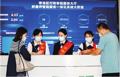 为了提高服务效率,李沧区行政审批局自主研发推广“小智叫号”“小智提醒”“小智帮办”等集群众办事、查询、评价为一体的多功能集成小程序,并通过各种方式向前来办事的群众和企业推广。目前,位于黑龙江中路的行政审批服务大厅平均办件时间已缩短到6.53分钟,平均等待时间3.98分钟。目前,“小智帮办”累计辅助办件21800多次,“小智提醒”累计提醒证照到期1700多次,“小智查档”扫描历史档案5800多份,“小智好差评”累计参评超17万人次,好评率达99.93%。