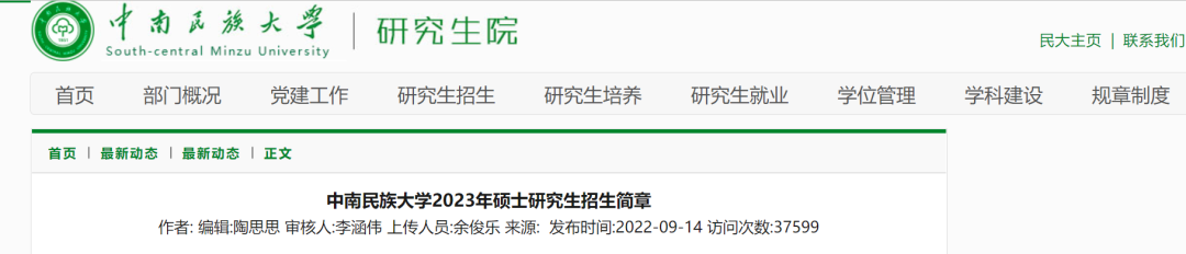 2023年,中南民族大学共有57个学术型专业和29个专业学位领域招收硕士研究生。