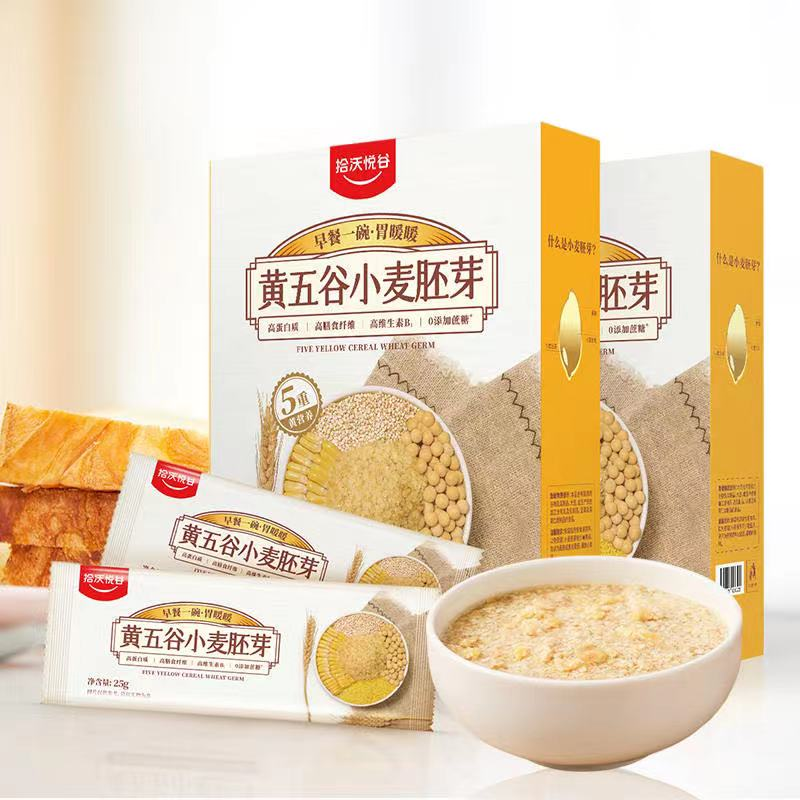 今天给大家推荐个好物——拾沃悦谷·黄五谷小麦胚芽!它有小麦胚芽、黄小米、玉米、黄豆、藜麦共5种食材,低温烘焙预熟,开水泡一泡就能吃!
