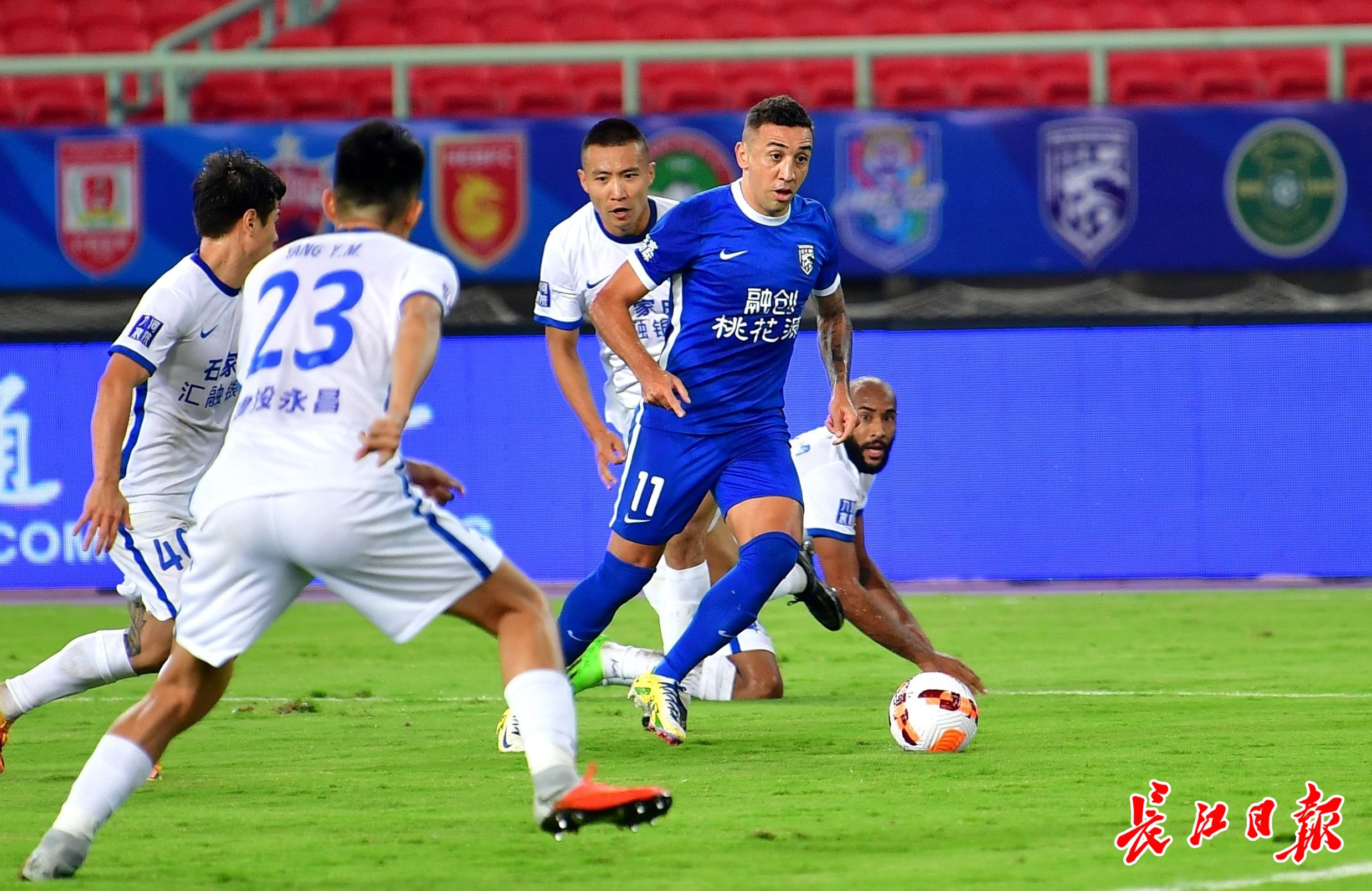 武汉三镇队戴维森遭遇对手包围逼抢。 记者喻志勇 摄