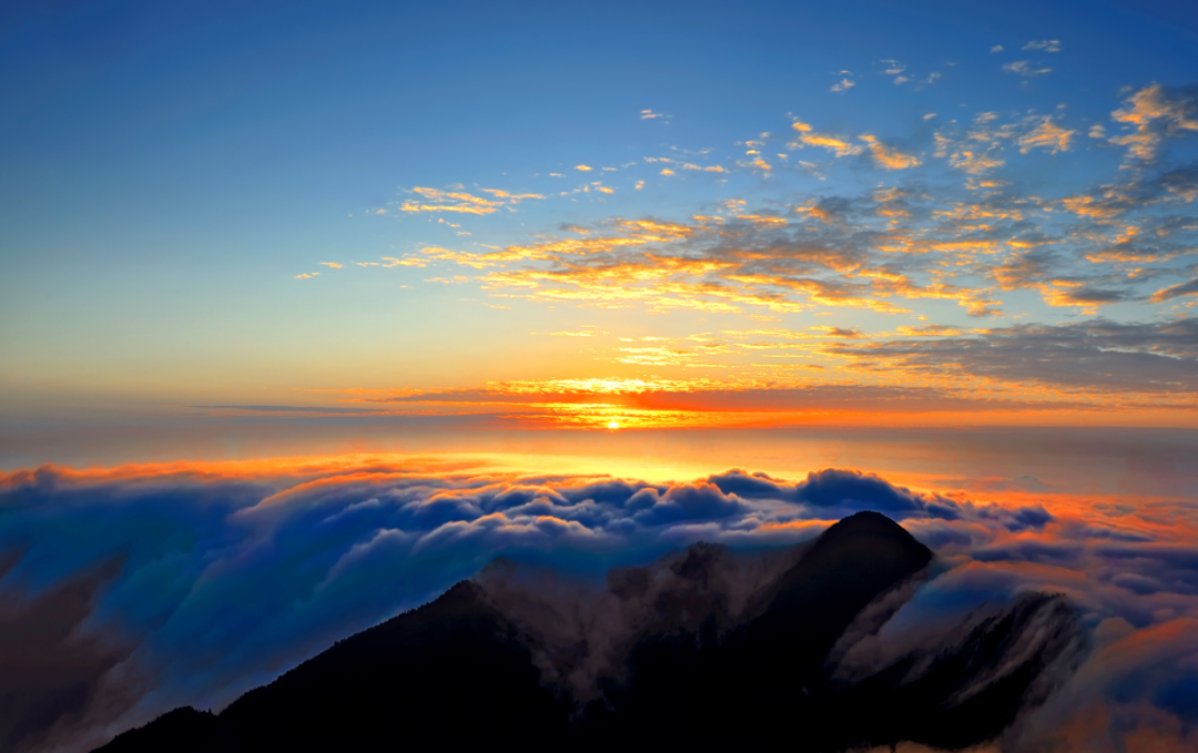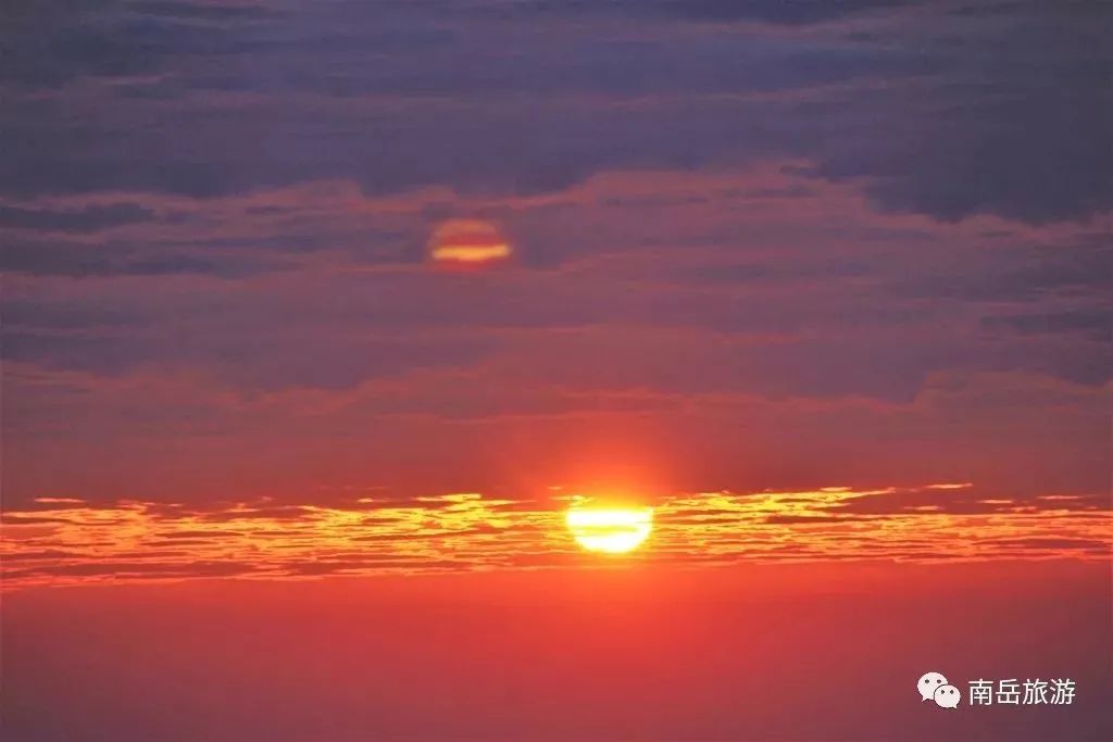 南岳衡山春观花、夏看云、秋望日、冬赏雪,秋天的日出和晚霞,瑰丽而耀目。