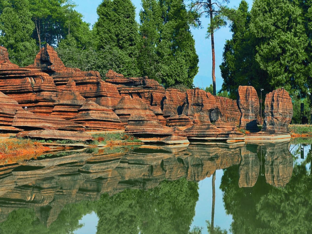 经过一整个夏天骄阳的炙烤,这片全球唯一的也是规模最大的在古奥陶纪形成的红色碳酸盐岩石林,仿佛渲染上一层红艳的底色,简直就是现实版的“火焰山”,堪称是全国最“红”的景区。
