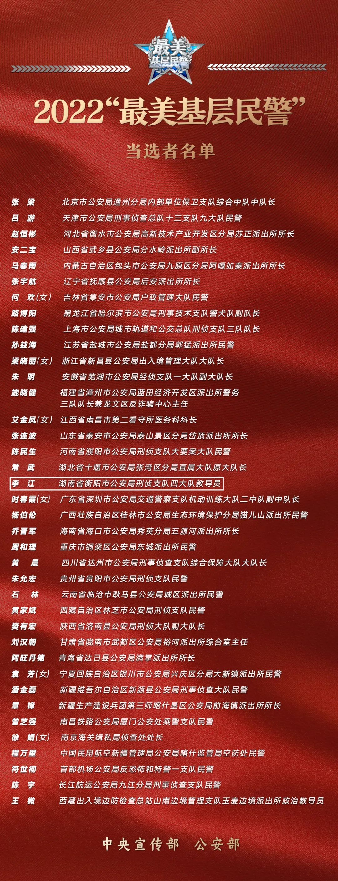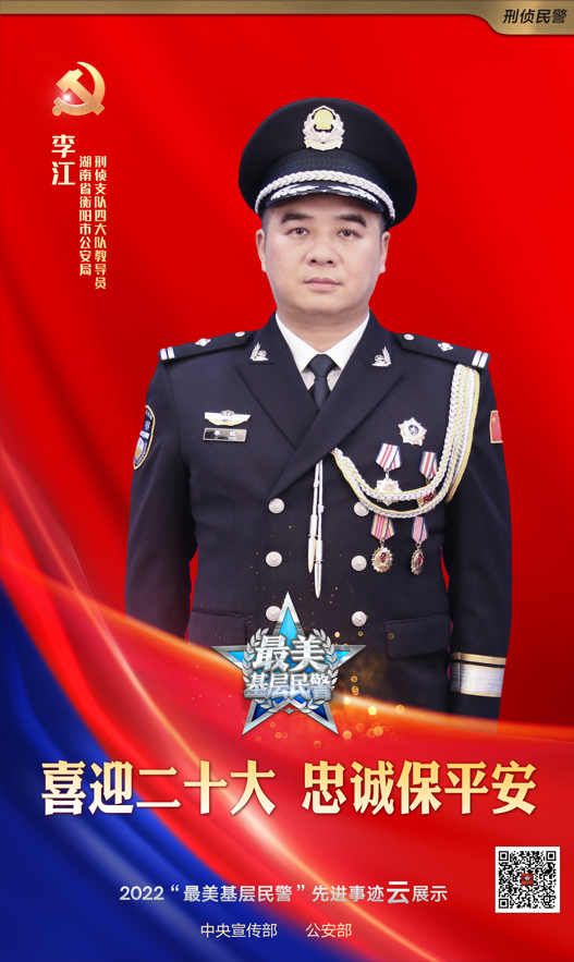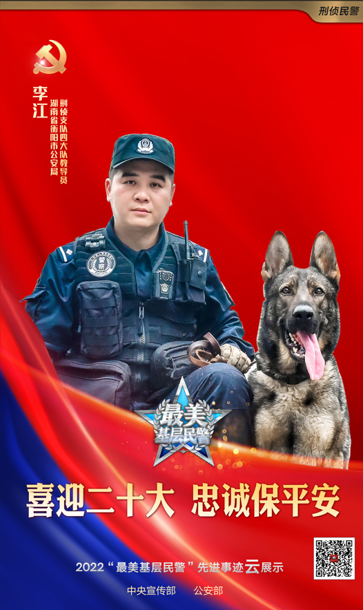 9月25日,中央宣传部、公安部向全社会集中发布全国38位“最美基层民警”当选者的先进事迹。我省衡阳市公安局刑侦支队四大队教导员李江荣获全国“最美基层民警”。李江是全国公安警犬技术行业第一个“二级英模”,是13名央视重点采访宣传的对象之一,是“智勇之美”的杰出代表。