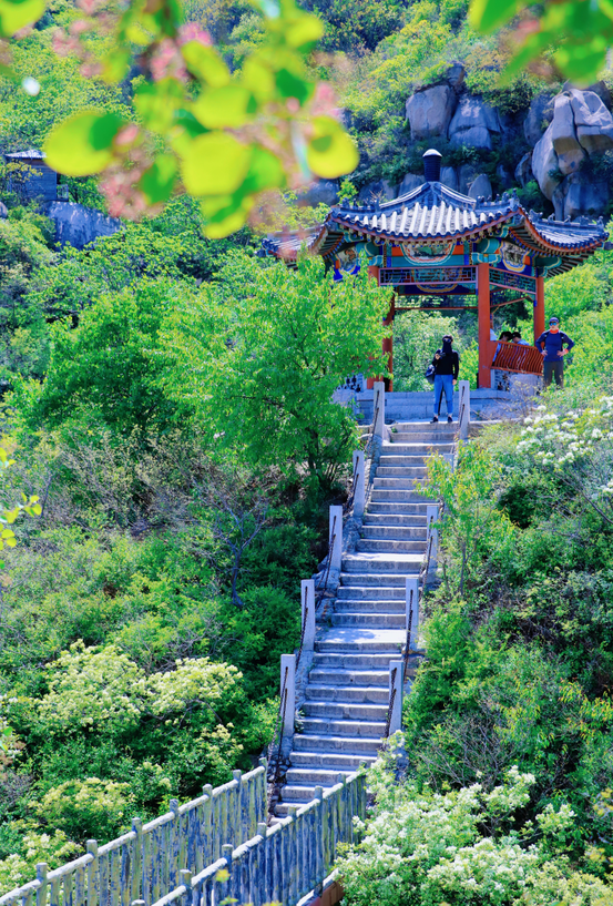 阳台山海拔1278米,为海淀地区最高峰。阳台山山脉,绵延南北,沟壑纵贯东西。“阳台山原本是一条上香的古道,如今被开发成了景区,从这里上山一直可以到达妙峰山,全程20多公里,古时的阳台山又叫‘妙高峰’。”阳台山景区相关负责人介绍,在明清时期,香客沿着这条古香道到妙峰山金顶上香,现在沿途景点有金山寺和多处茶棚遗址。
