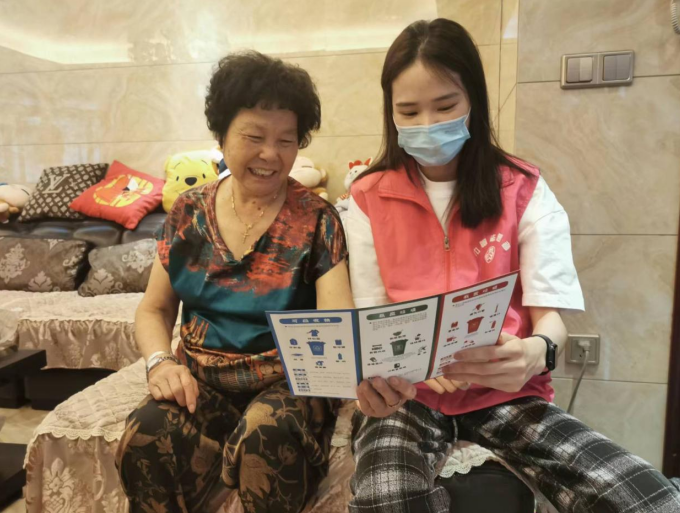 社区工作人员和妇联志愿者挨家挨户上门宣传,通过发放垃圾分类宣传三折页,给居民讲解垃圾分类的好处和必要性,上门进行垃圾分类工作。在活动中,志愿者们给居民免费发放分类垃圾环保袋,指导社区居民如何区分垃圾分类,投放分别要装入不同颜色的垃圾桶,同时提醒居民新发放的垃圾桶要放在显眼的位置。工作人员和志愿者不厌其烦地解答居民提出的各种日常垃圾分类问题,鼓励居民从自身做起,坚持做好垃圾分类,积极带动身边的朋友、邻居等。