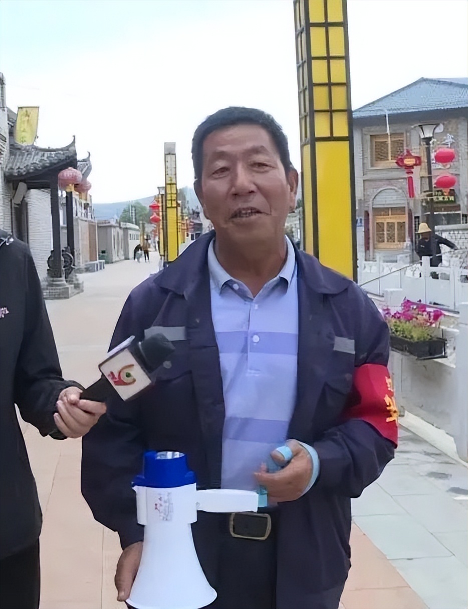 一个喇叭、一条袖章,肩负着景区环境保护的责任,殷进军正在新建的红色旅游项目——红军村内巡逻。