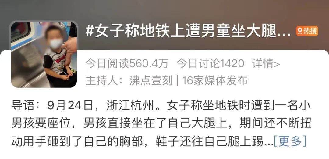 #女子称地铁上遭男童坐大腿抢座摸胸#