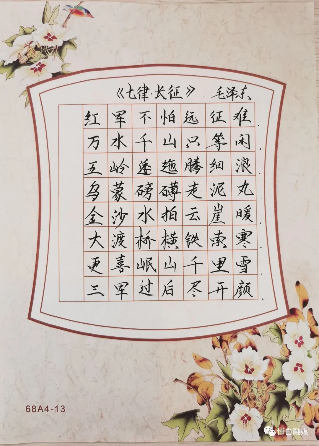 “恰同学少年,风华正茂”,“生的伟大,死的光荣”,“红军不怕远征难,万水千山只等闲……”当大家书写着这些革命诗词的时候,仿佛又回到了战火纷飞的峥嵘岁月里,一次次被最可爱的人感动着,深切感受到先烈们无畏的革命情怀。正是这些千千万万的英雄们用他们的生命才换来今天来之不易的幸福生活。