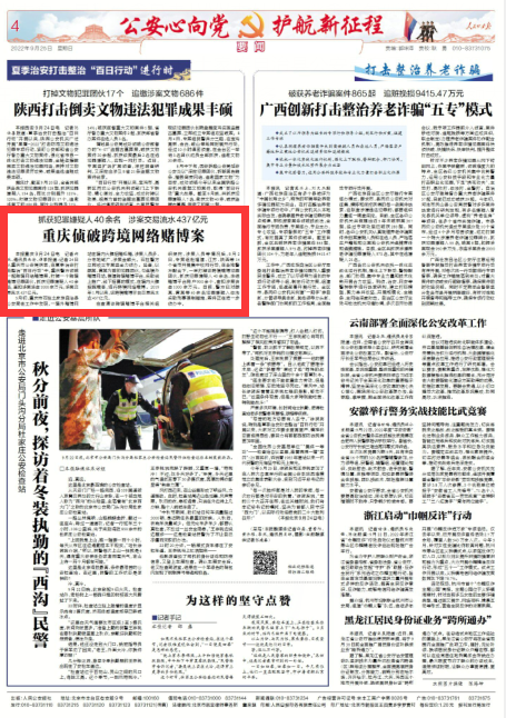 记者24日从重庆市公安局获悉,在夏季治安打击整治“百日行动”中,重庆警方侦破一起跨境网络赌博案,打掉一个跨境赌博犯罪团伙,抓获犯罪嫌疑人40余名,查扣涉案资金1000余万元,涉案交易流水437亿元。