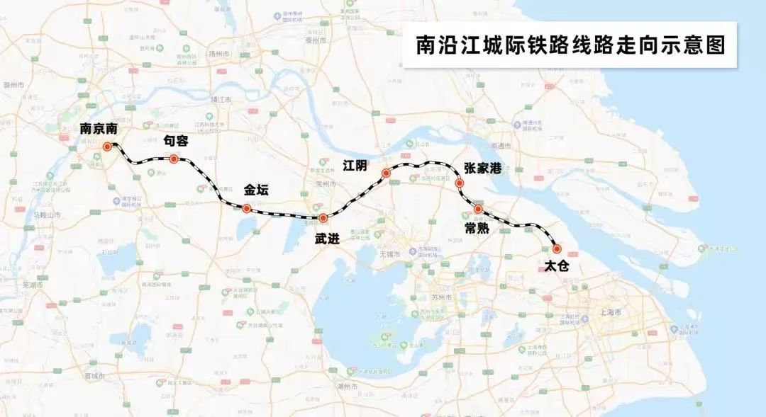 南沿江城际铁路全线全长278公里,是设计时速350公里的高速铁路,全线共设置8座车站:南京南、句容、金坛、武进、江阴、张家港、常熟和太仓站,从太仓接入上海。项目建成后沿线多个全国百强名县将加入融入沪宁一小时高铁圈,将更好服务和带动沿江地区的经济社会发展。