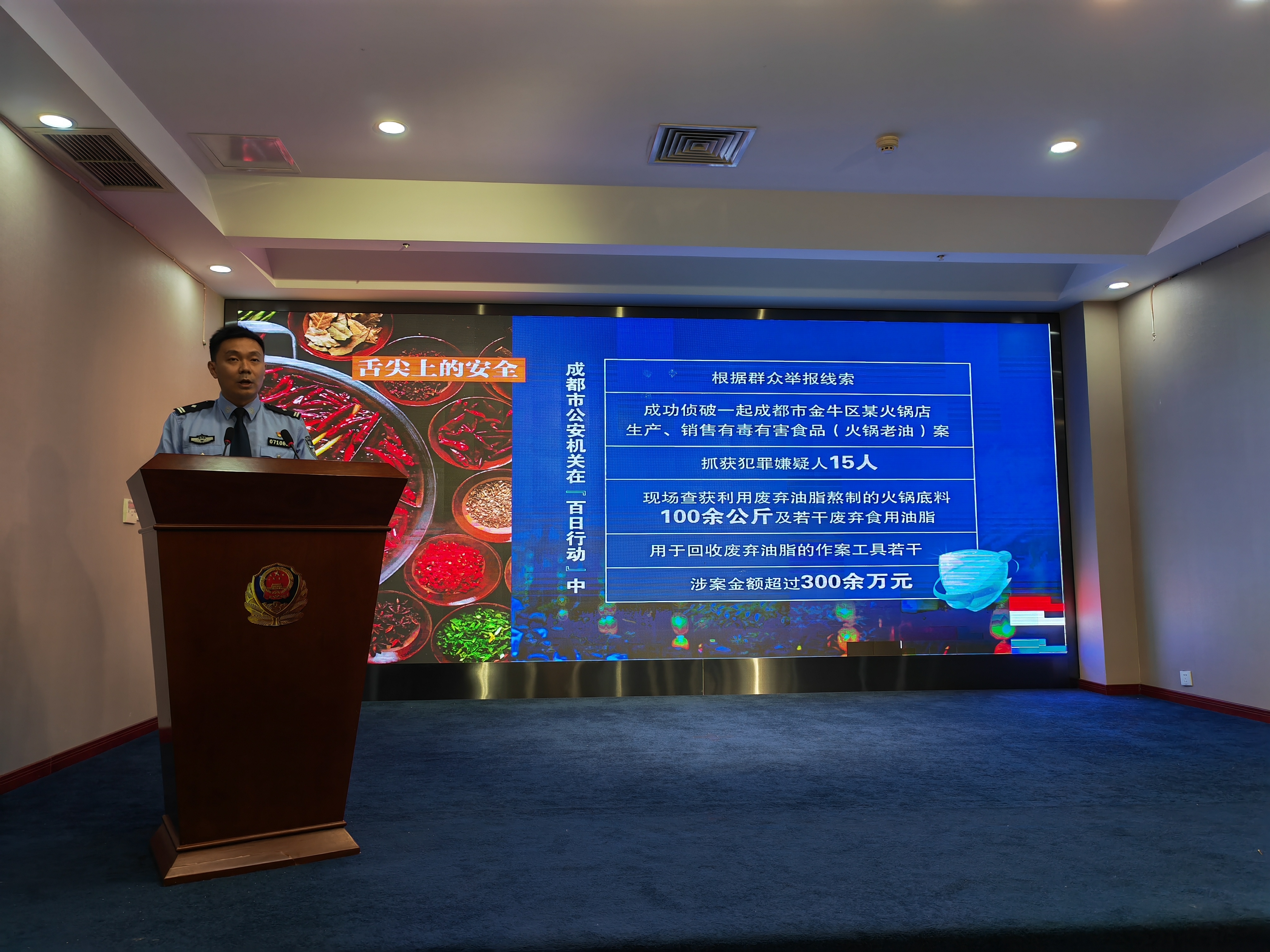 在四川公安今天召开的夏季治安打击整治“百日行动”第六场主题系列新闻发布会上,成都警方通报了侦破的金牛区某火锅店生产、销售有毒有害食品(火锅老油)案。