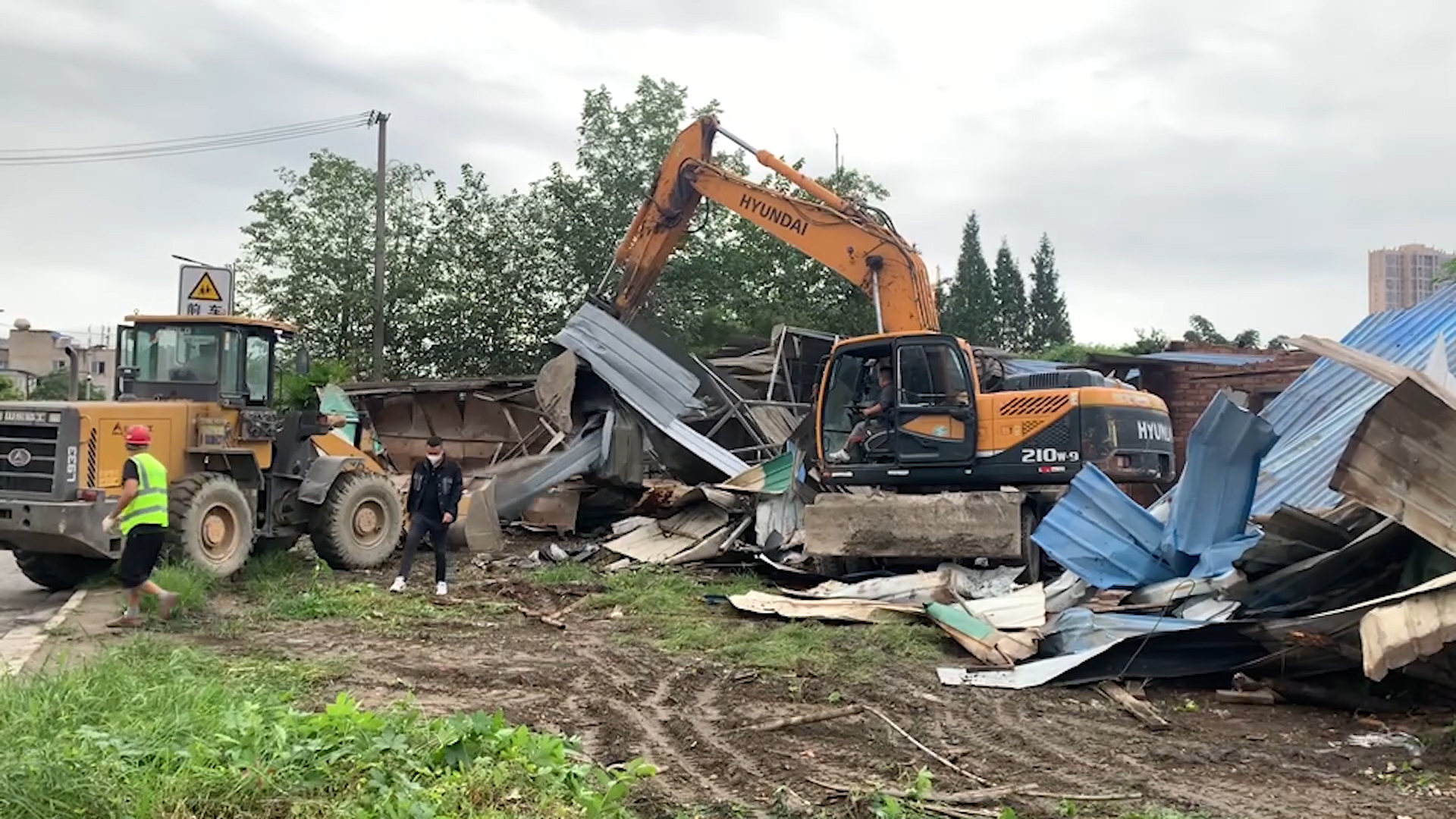 在新都区桂湖街道惠民路段,此刻,城管执法人员正在维持现场秩序,伴随着机器的轰鸣声,一旁的违章建筑正被有序拆除。据了解,该违建点位内的废品收购站、汽修、木料加工、文具等9家商户,系多年存量违建,且位于城郊结合部主要通道,占用了人行道、绿化带,存在重大安全隐患,在多次被下达限期自行拆除但当事人拒不执行后,新都区综合行政执法局依法对其进行了拆除。