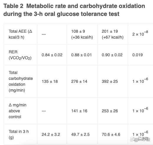 研究者观察了实验者口服葡萄糖3小时内再结合SPU的代谢率情况,结果显示,高强度SPU下,3h总消耗量为70.6g上下,低强度在49.7g左右,相比前面两者,对照组总消耗量为24.2g——