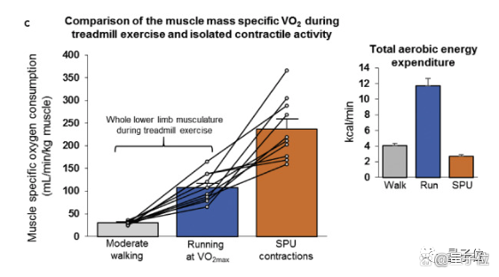 尽管跑步的能量消耗的确高于SPU收缩和走路,但他们也发现,单位体重下,SPU局部耗氧量却高于跑步中的下肢部分耗氧量,最起码,走路比起SPU4.5小时,单位体重耗氧量仅为13%。