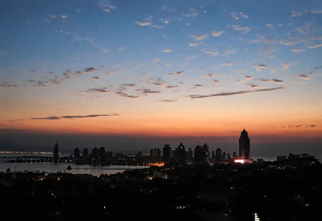 天际处的一线橙红 由浓转淡