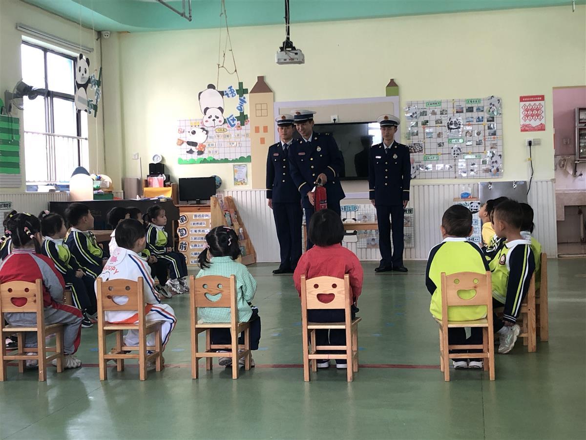 升旗仪式结束后,消防员就五星红旗的由来进行了详细的解说,让幼儿园的小朋友对五星红旗上的五颗代表不同含义的星星有了初步的了解,并尊重、保护五星红旗。消防员根据幼儿园小朋友的认识理解能力,通过生动有趣的小故事,深入浅出的语言,形象的肢体动作为孩子们讲解了火灾逃生的小知识。