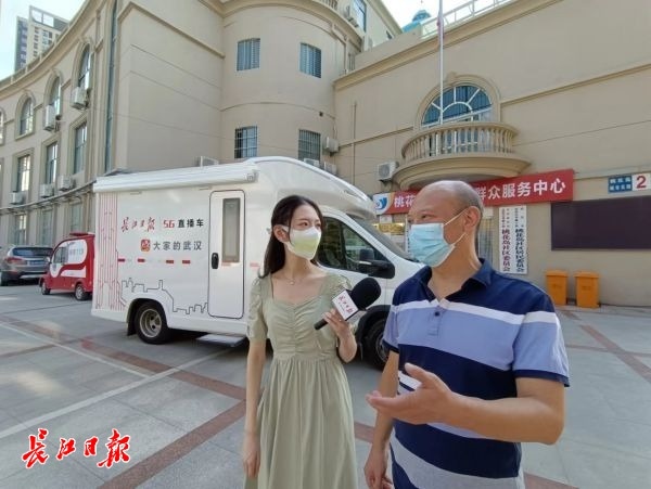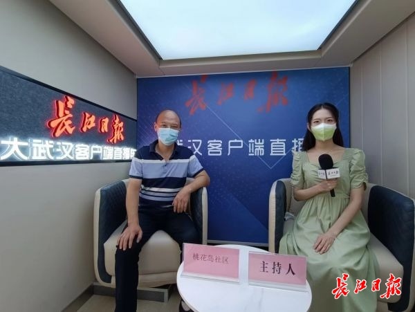 桃花岛社区书记张文斌接受长江日报主播采访。 记者李爱华 摄