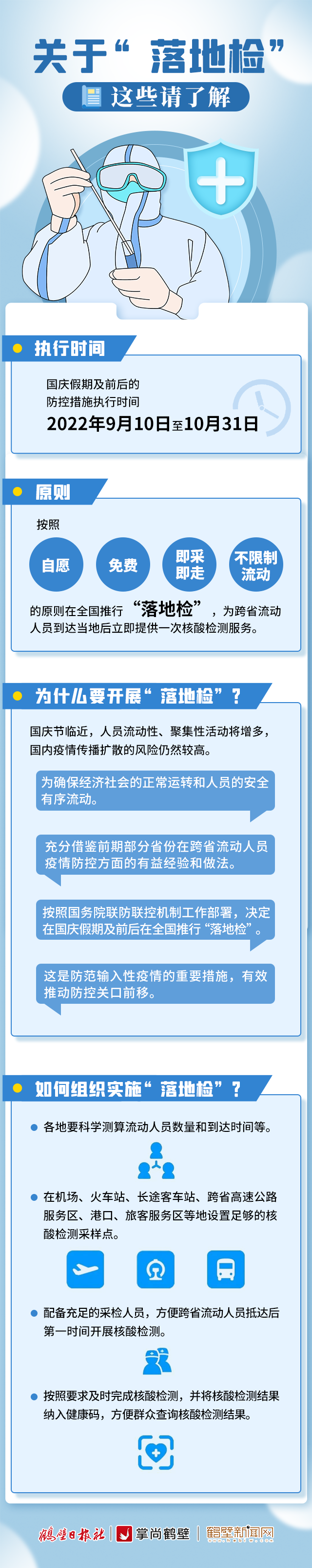 近日,国务院联防联控机制新闻发布会上提出,国庆假期临近,人员流动性增加,加大了疫情传播的风险,防控形势严峻复杂。为了避免发生本土规模性疫情,我国在国庆假期及前后,在全国推行“落地检”。